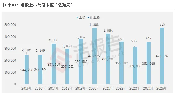 市场行情表现强劲香港IPO活动持续火热的推动2025年港股上市公司合计市值规模达47.4万亿港元,较2024年大幅上升约34.2%,基本与2020年的历史巅峰水平相当