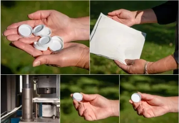 技术优势:采用压制干燥技术,将来自可持续管理森林的植物纤维制成高密度三维瓶盖,能耗仅为传统塑料注塑的10%,碳排放降低可达80%。