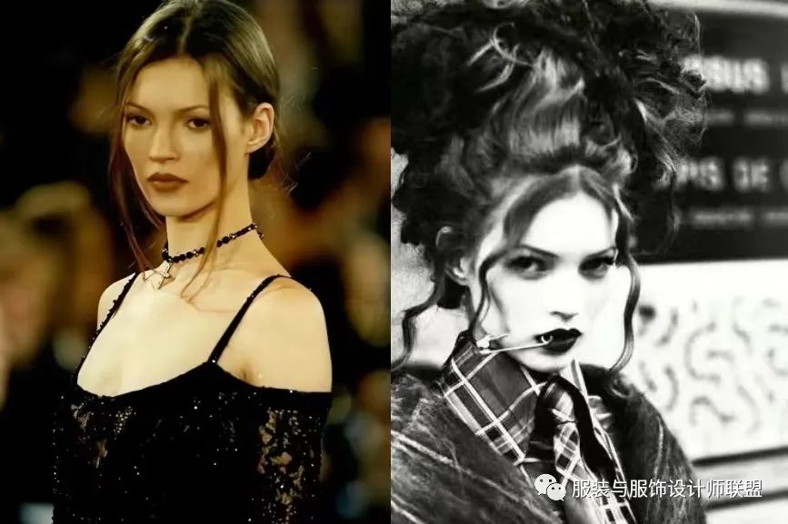 同样被誉为“恶女”原型的还有现象级超模Kate Moss,她的高颧骨、厌世不羁的气质,以及朋克的穿着,都展现了不一样的强大女性特质。