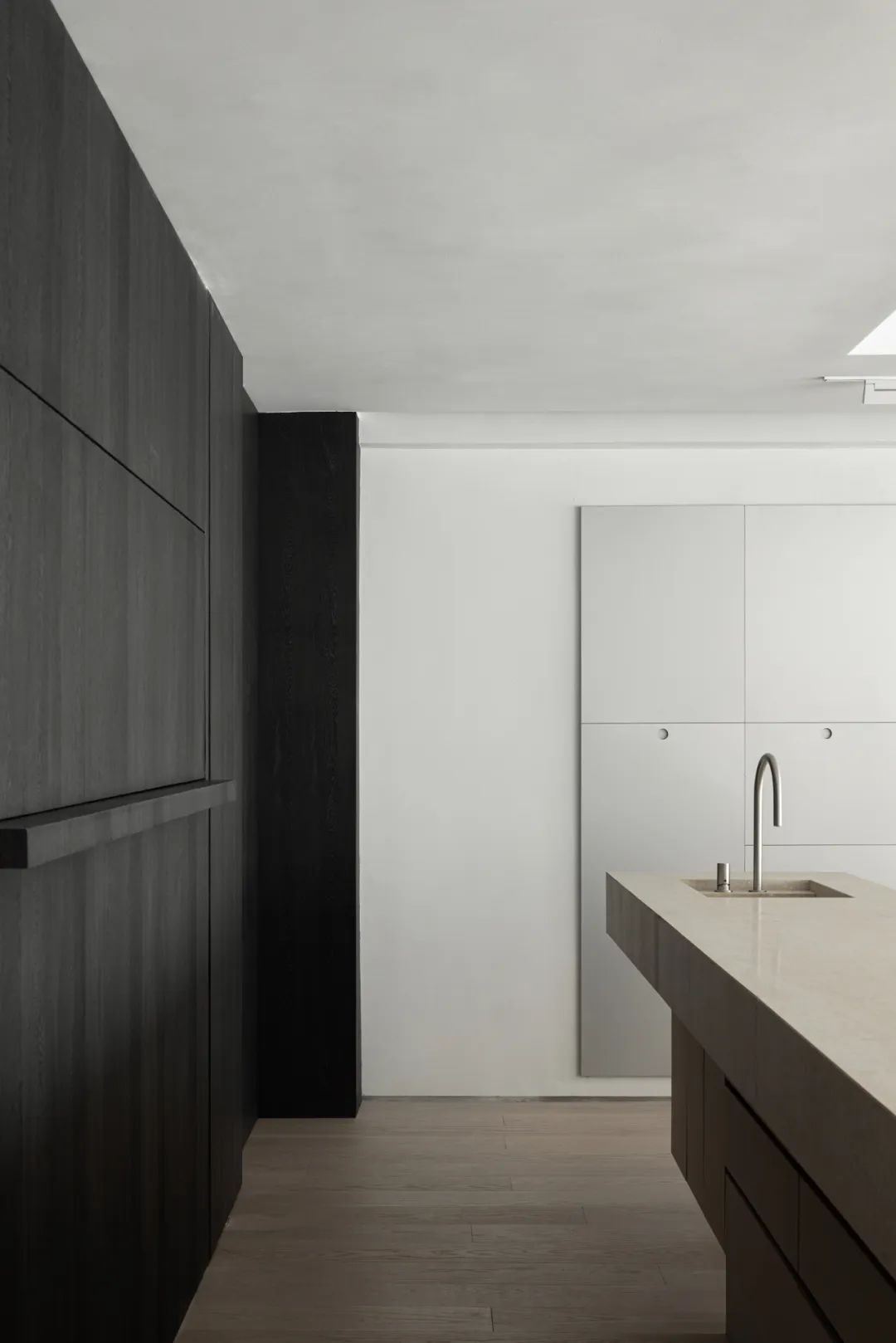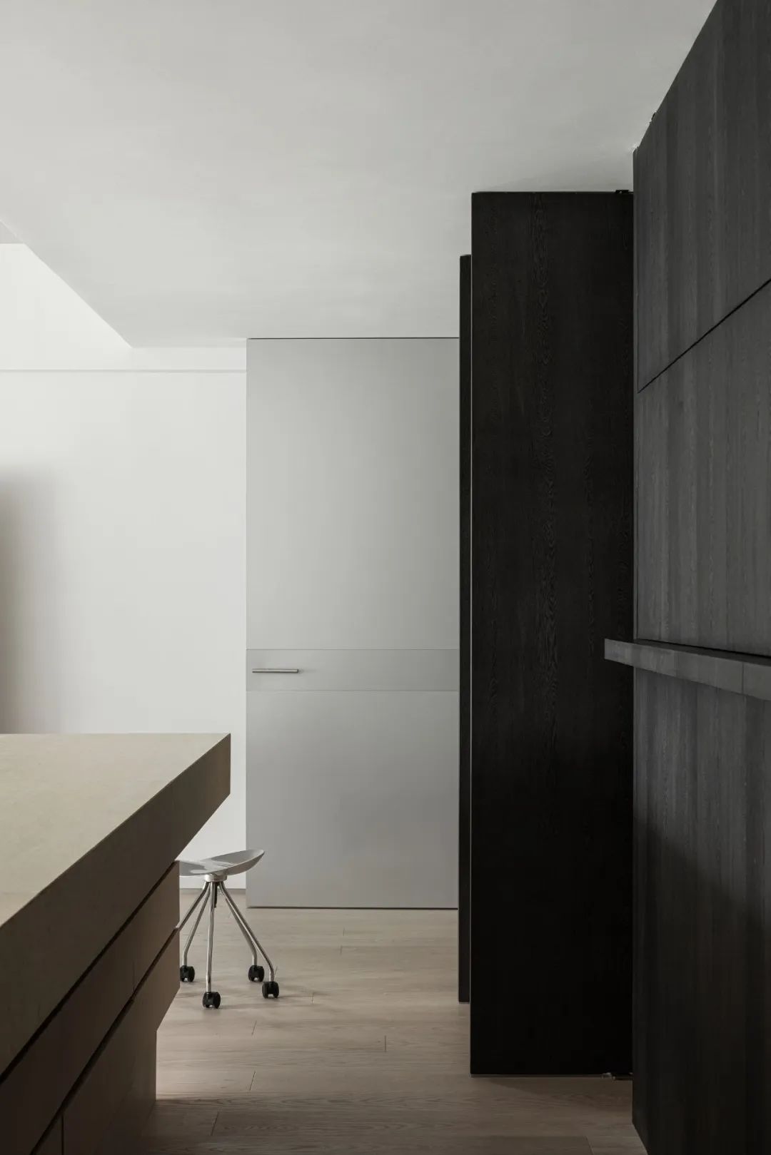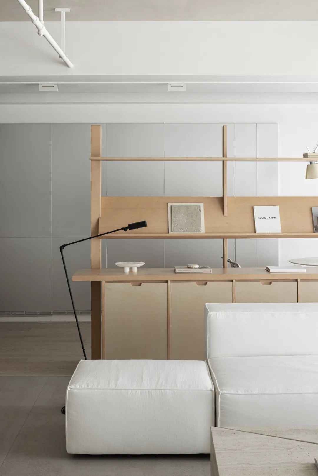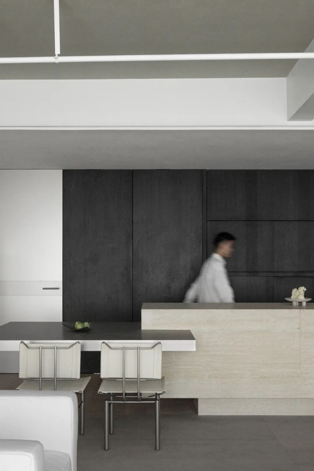 项目位于深圳南山,作为服装主理人办公和直播的空间,设计之初,团队认为服装主理人在一定程度上应具备领袖的引导力与美学素养,同时又让参与者有理想生活的消费可实现或转化,兼具商业价值实现与情绪价值需求。设计团队试图结合主理人自身的松弛气质这一稀缺特质,通过营造一个日常与真实的消费体验,在沙发会客区,中岛吧台,阅读区和办公区等区域之中,呈现主理人的真实一天日常,再把审美植入到空间之中,示范引导一种参与者可实现的消费体验。同时把松弛气质转化为真实空间的质感体验,期望传达一种既轻盈又厚重、同时又兼具通透性的氛围体验。