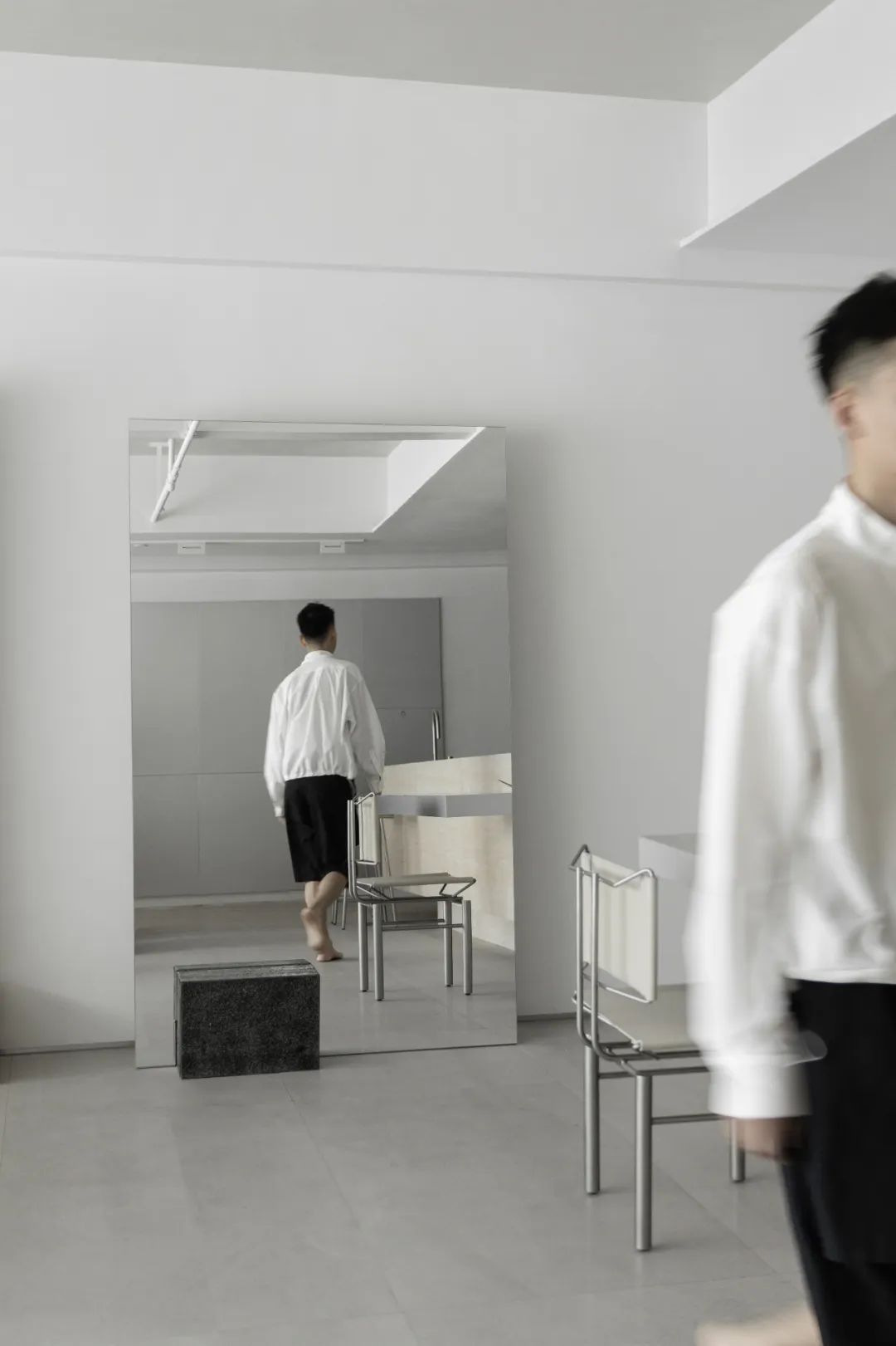 无限STUDIO空间设计完成的“服装主理人的美学空间试验场”,尝试提出让空间微弱质感呈现,通过恰当的落地距离,真实场景可实现的另一种可能性再现,来建立某种关联性。