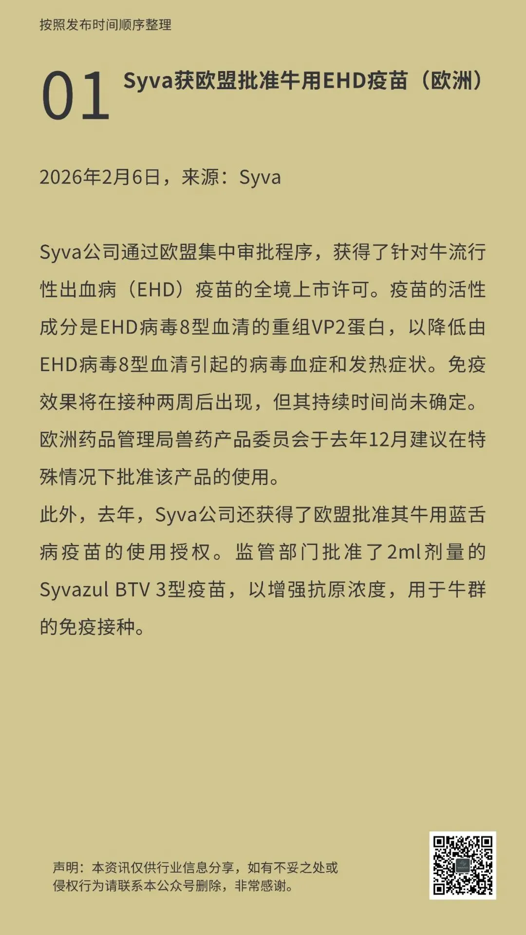 行业观察 | 动保疫苗全球头条资讯(2026年2月上旬)