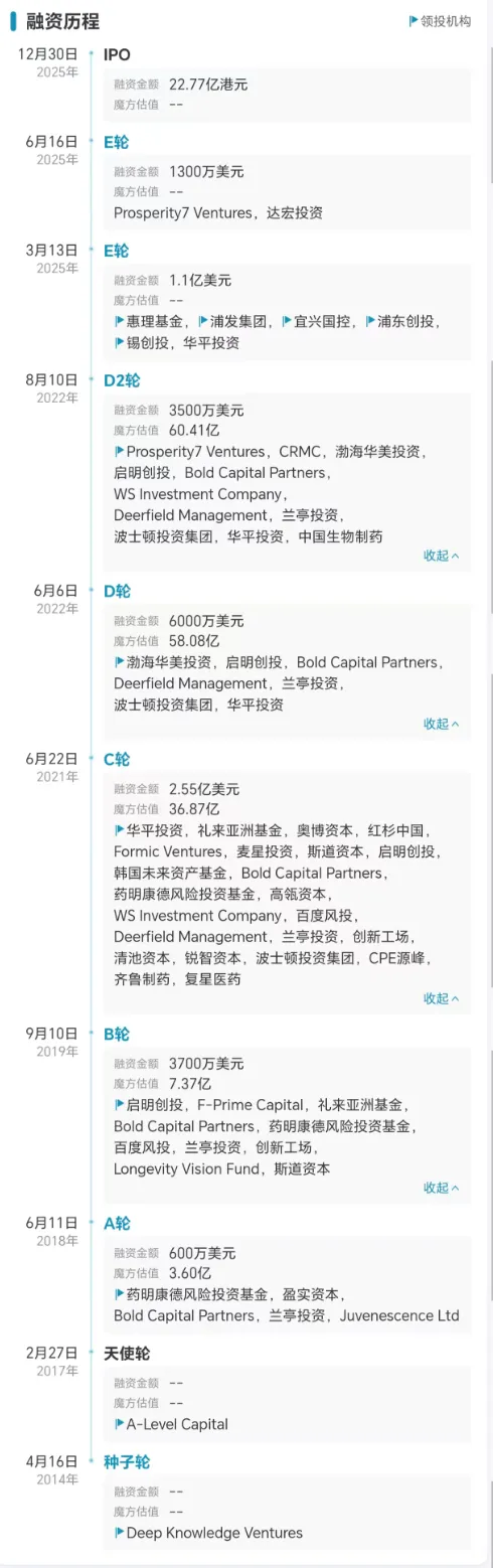 英矽智能前阵子在港股上市了,很多媒体报道成全球AI制药第一股,这个标签没错但感觉有点夸张,更准确的说法是AI驱动药物发现及开发公司,处于制药行业的前端链条部分,公司在招股书里也是这么给自己定位的,叫药研先锋比较合适。这个公司跟百济神州有点像,创始人是老外,合作团队主要在国内。创始人叫Alex Zhavoronkov博士,加拿大皇后大学商业及理学双学士,美国约翰霍普金斯大学生物技术硕士,俄罗斯莫斯科国立大学物理及数学博士,学术背景相当复合,是他能在AI与药物发现跨领域创业的因素之一。合作人主要是任峰博士和王劲松博士,都是医药领域的卓越人才。下面是公司的融资历程,能看到药明康德在2018年最先投了他们,算是来自同行业的认可。下图是AI研发药物行业的历史发展情况,公司是AI药物发现行业先驱,2016年发表首篇论文,2019年合成首个针对纤维化的先导化合物,2021年研发首个临床阶段新型分子,2024完成首个通过Ⅱa期临床试验的药物。公司自主开发了一个专注药物发现和开发的生成式人工智能平台Pharma.AI。这个平台能够识别新的药物靶点,针对新型及既定的靶点从头设计分子,优化候选药物的临床开发,及简化起草学术论文及其他相关文件的流程。