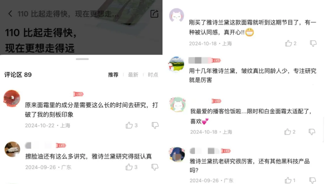 其中,雅诗兰黛作为高知名度品牌,在进行播客投放时能得到更大的边际效应。正如《报告》指出,由于消费者对品牌本身已有较高的熟悉度,往往能形成更强的广告记忆。同时大品牌积极进入新兴媒介也更易建立与消费者的亲近感,提升好感度。2024年,喜马拉雅携手雅诗兰黛,与《凹凸电波》《FIT4LIFE》《限时肤浅》3档播客,进行个性化内容定制,从不同角度将雅诗兰黛白金面霜与播客节目无缝融合,通过生动坦诚的交流和深入浅出的讲解,高效传递该面霜源自肌肤长寿科学的逆龄奥义。相关播客节目累计播放量超156.9万。