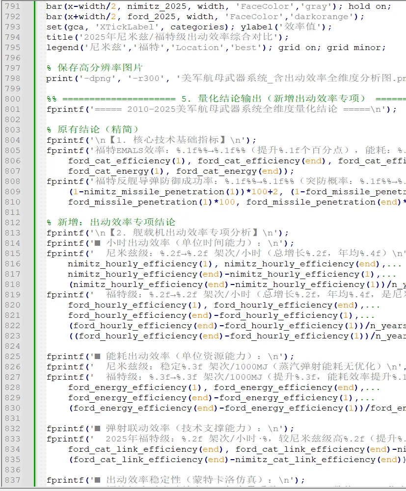 - 核心代码实现了美军航母 3 大核心武器系统(EMALS、宙斯盾、舰载机)的量化分析,覆盖趋势可视化、关联建模、结论输出,可直接支撑报告的量化章节;