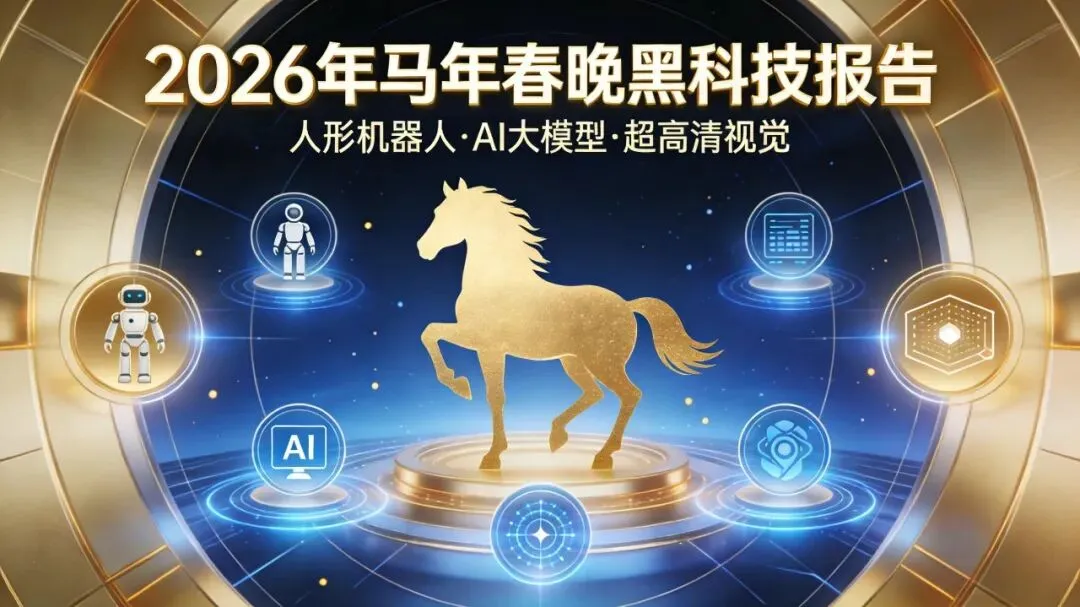 2026年马年春晚以“骐骥驰骋,势不可挡”为主题,黑科技应用彻底打破“背景板”定位,深度融入节目表演、内容制作、视听传播、情感交互四大核心场景,实现“科技赋能艺术、科技传递温情”的核心目标,各赛道黑科技应用场景贴合节目主题与全民需求,具体拆解如下: