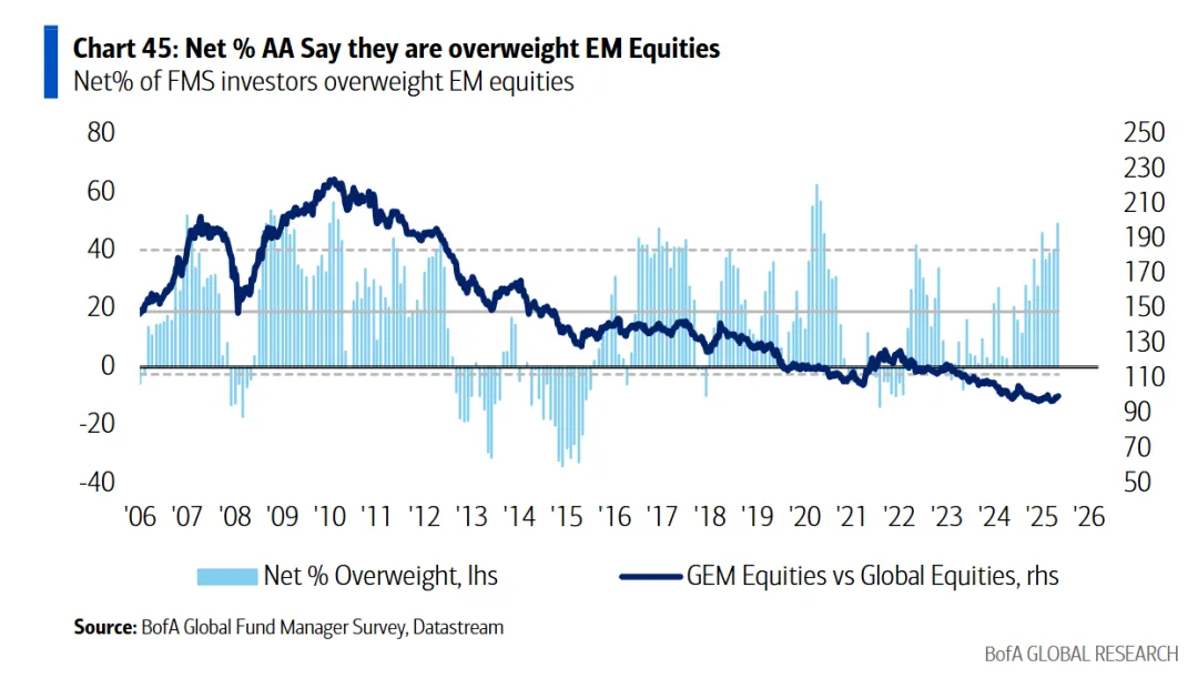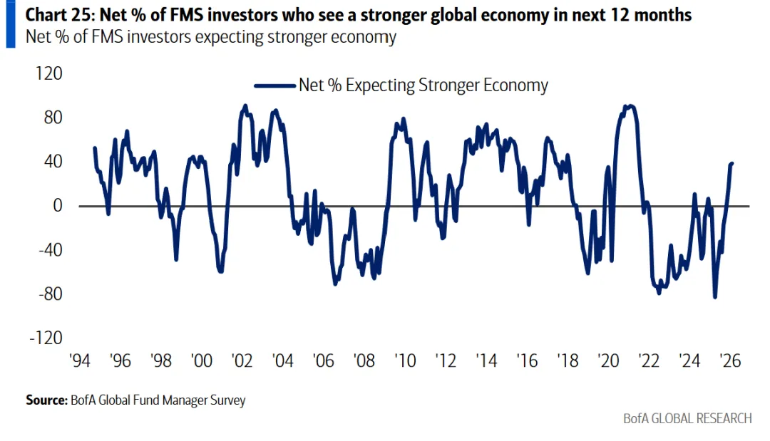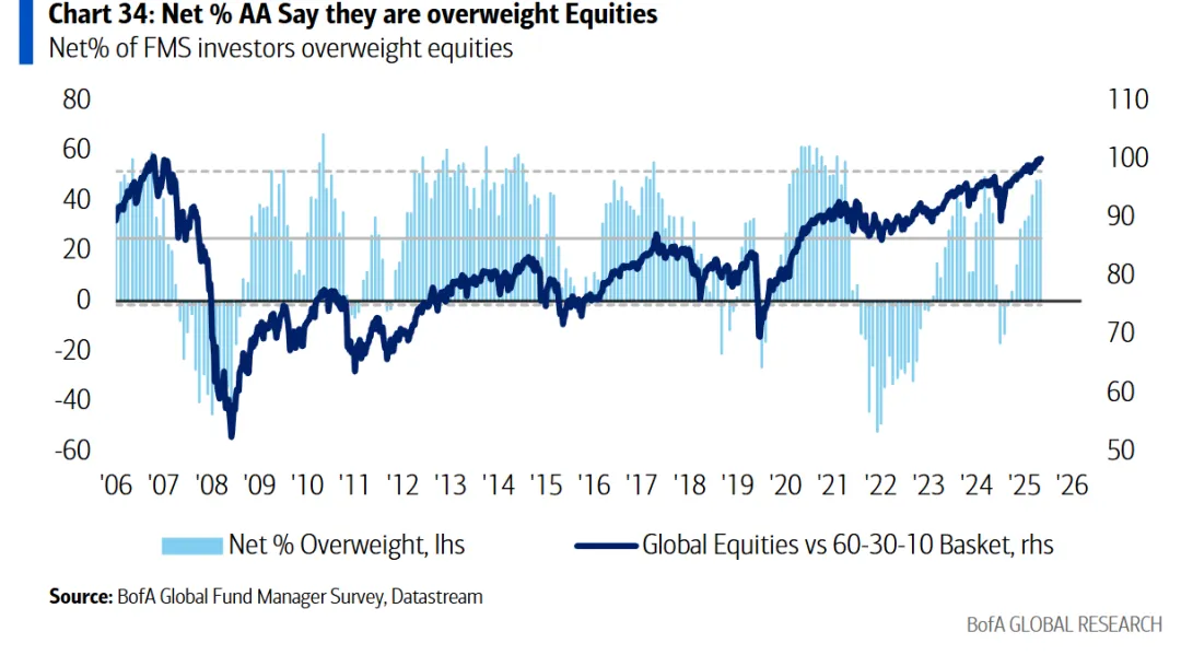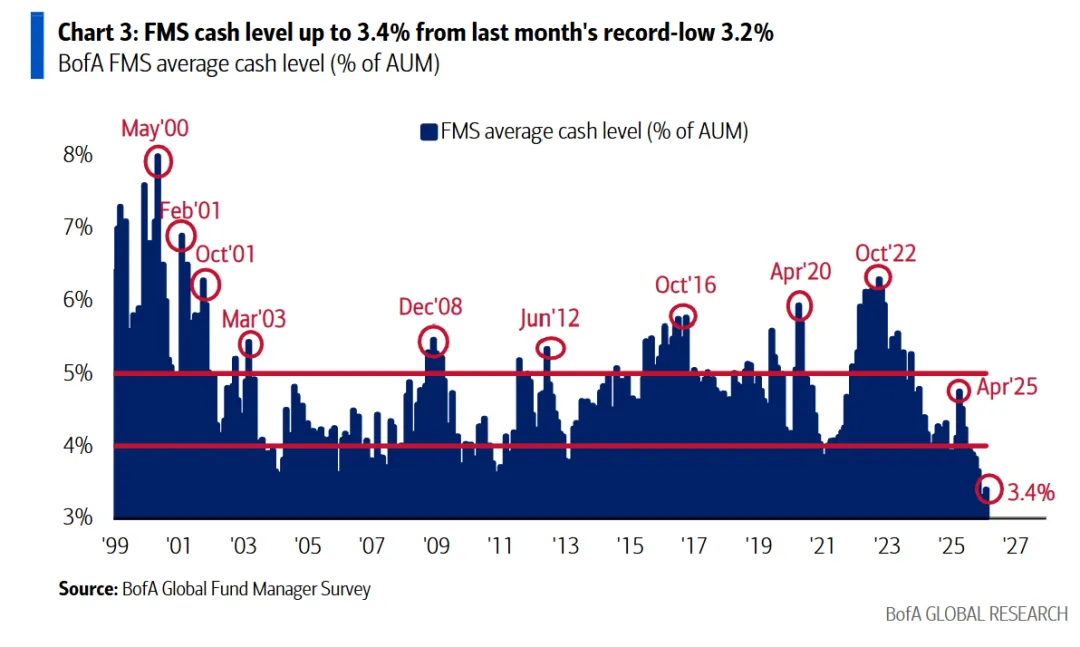 本次美银全球基金经理调查清晰地描绘出当前全球资本市场的格局:经济无着陆的乐观预期支撑风险资产配置,资金从核心美股、科技向新兴市场、周期品、价值股轮动,但仓位拥挤、逆向指标发出卖出信号、AI 泡沫和私人信贷风险隐现,都意味着一季度市场的波动将显著加大,追涨高拥挤资产的风险陡增。