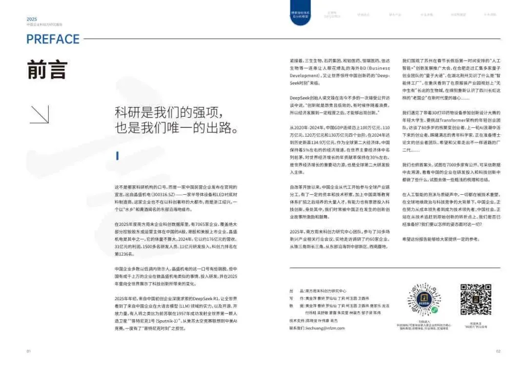 中国企业的科技创新已从“成本领先”迈向“技术引领”的关键转折点。在政策、资本和人才的共同驱动下,以研发投入为基石、以专利和标准为产出的创新体系日益成熟。报告通过构建一套多维度的评价体系,系统性地梳理了中国7065家上市企业的科创表现,并揭示了头部企业在区域、行业和所有制上的分布特征,以及未来面临的挑战与机遇。