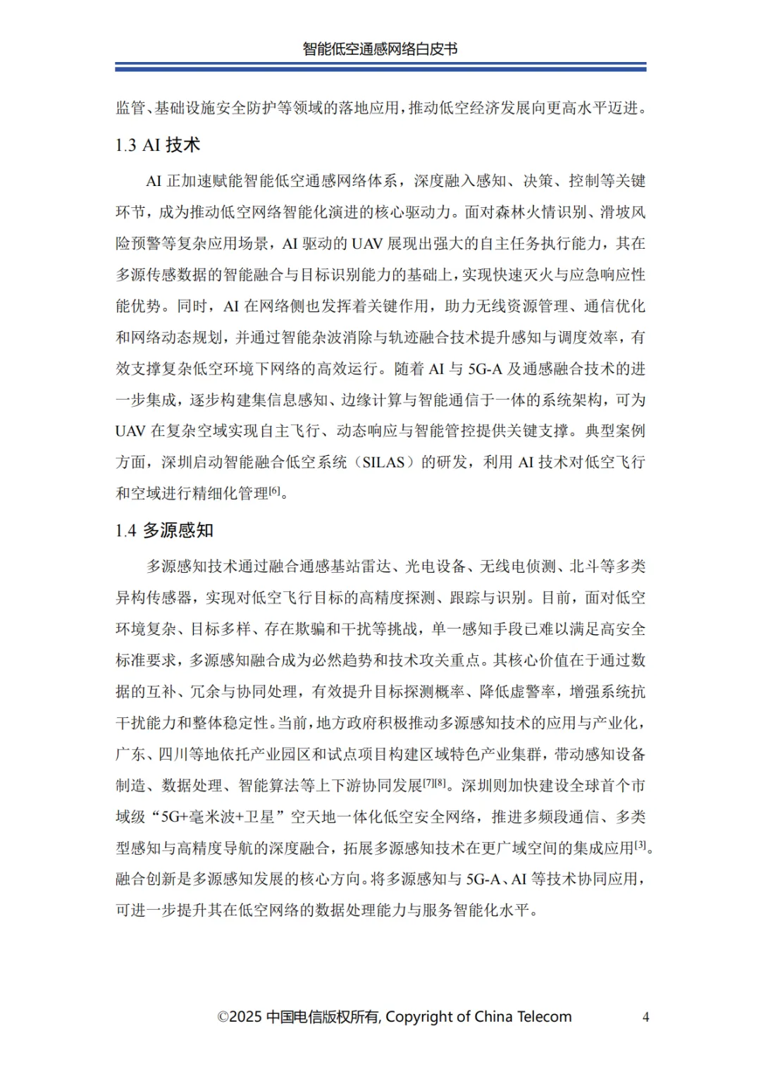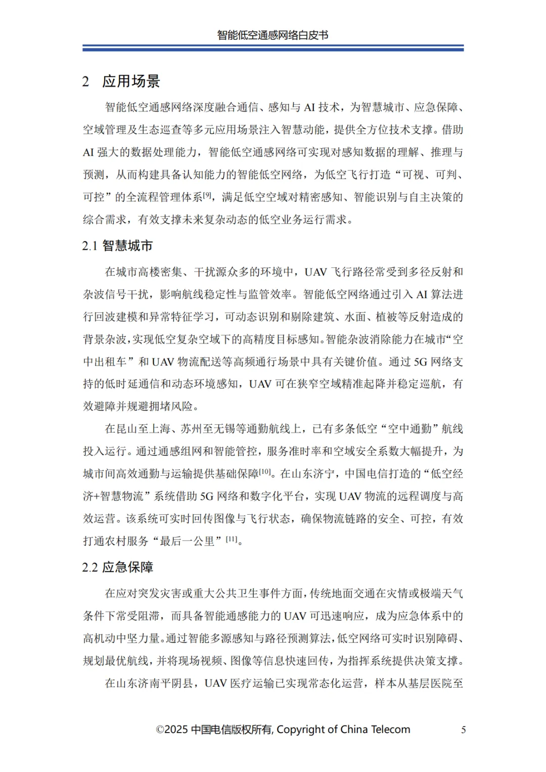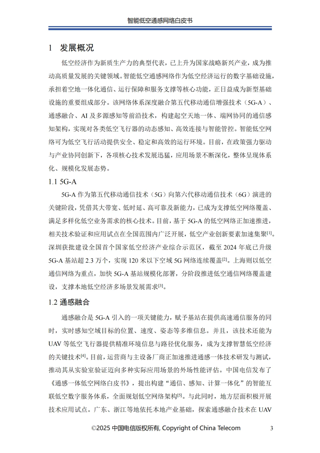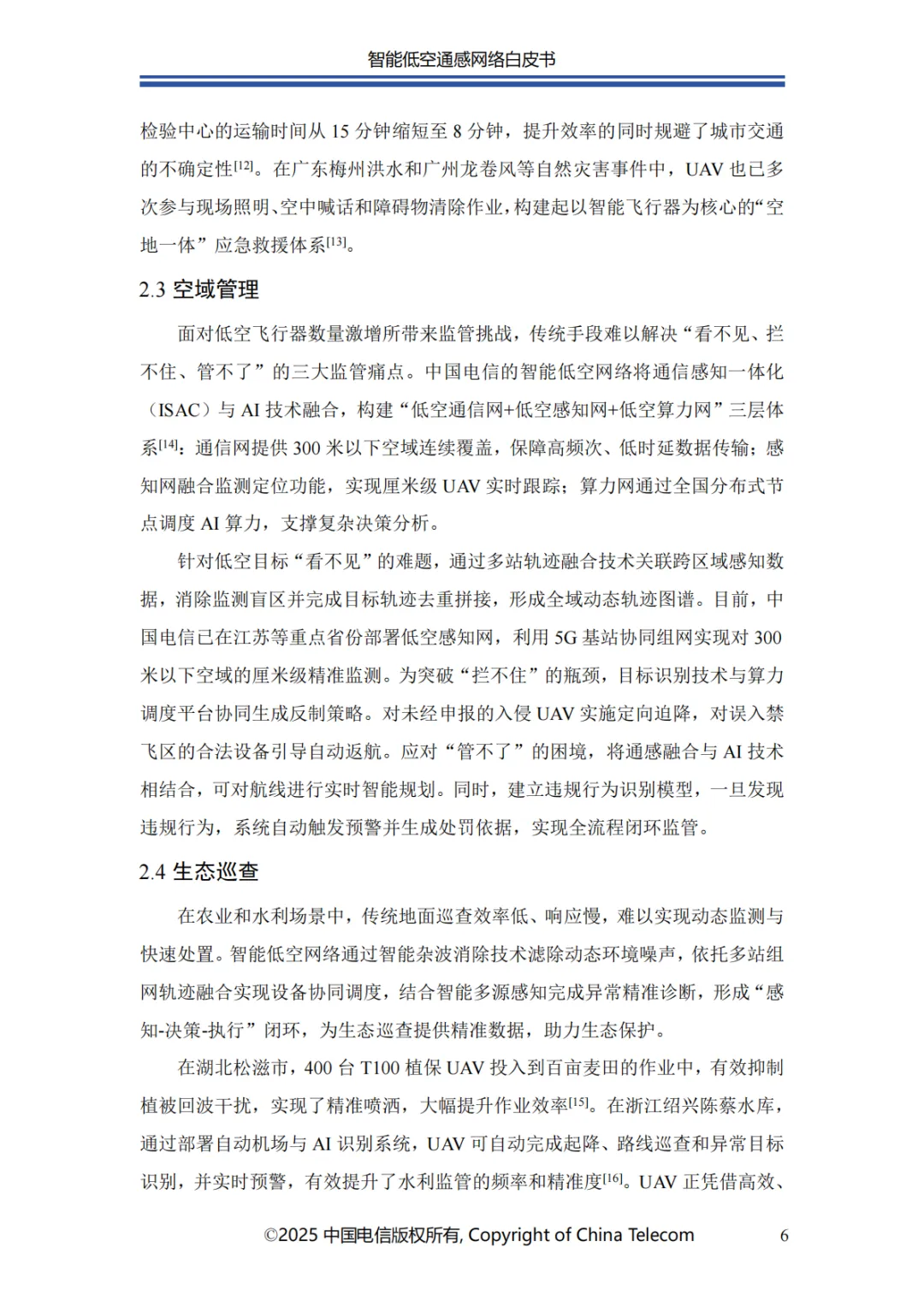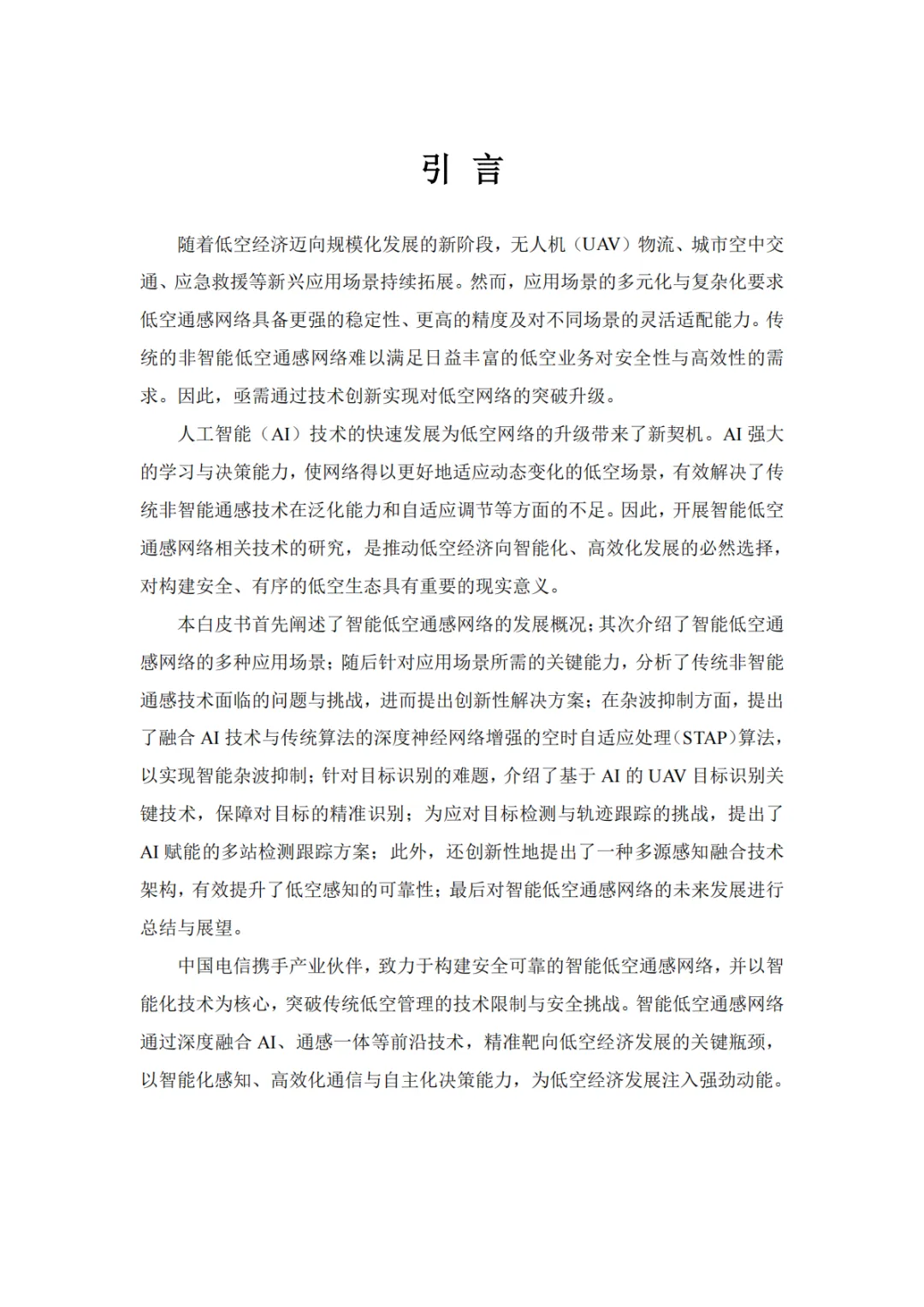 中国电信携手产业伙伴,致力于构建安全可靠的智能低空通感网络,并以智能化技术为核心,突破传统低空管理的技术限制与安全挑战。智能低空通感网络通过深度融合 AI、通感一体等前沿技术,精准靶向低空经济发展的关键瓶颈,以智能化感知、高效化通信与自主化决策能力,为低空经济发展注入强劲动能。