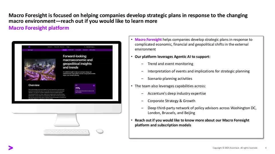 - 强化企业韧性: 在商业、人力、技术和运营等所有维度建立“韧性优先”(resilience first)的思维,以抵御潜在的经济、地缘政治和气候冲击。