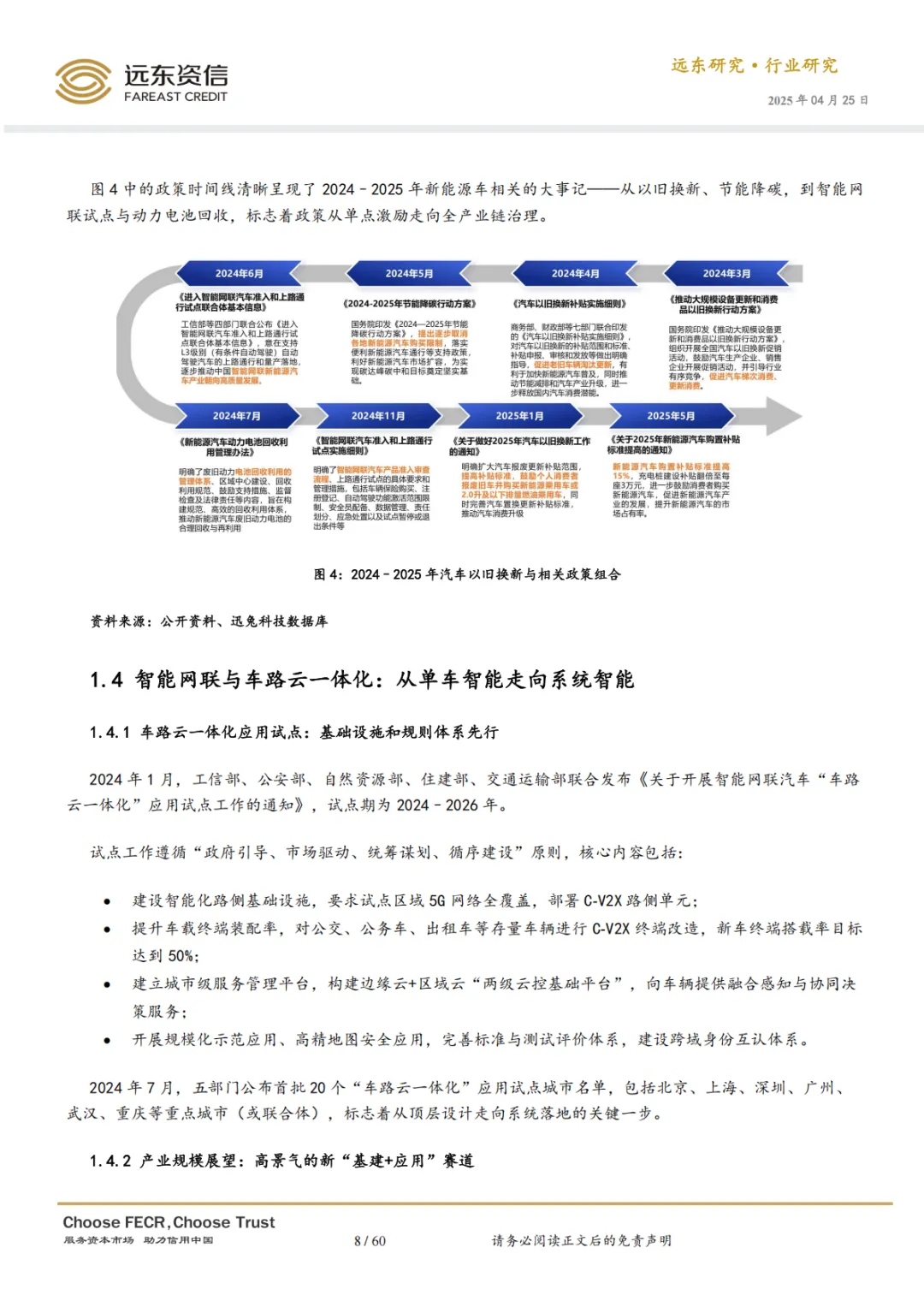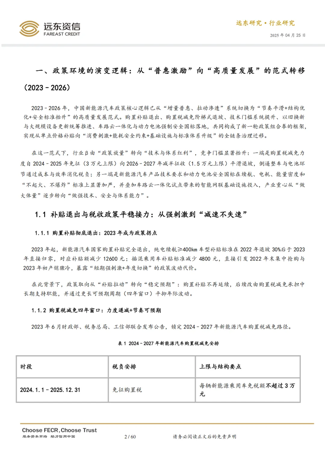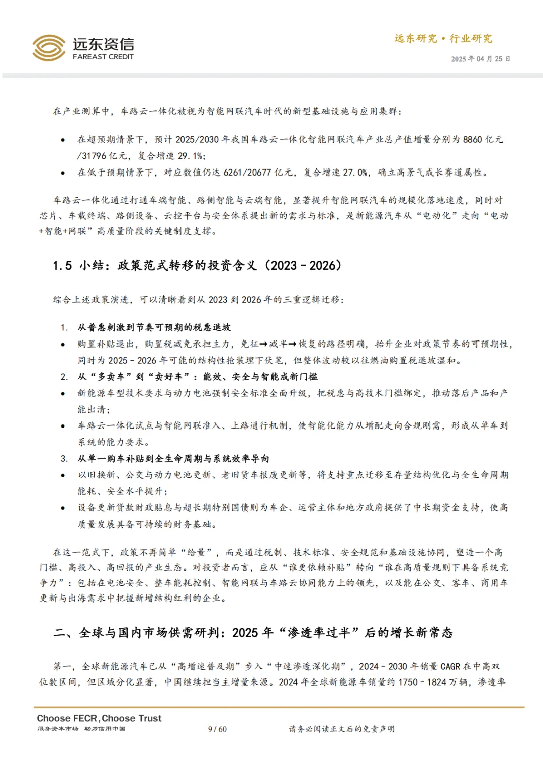 2025 年前后,中国新能源汽车行业进入发展新阶段。政策范式已从“补贴拉量”全面切换至围绕“税收退坡、技术强监管、以旧换新、车路云一体化”的高质量发展模式,行业增长的驱动力从政策放量转向能效、安全、智能与体系能力的全面升级。