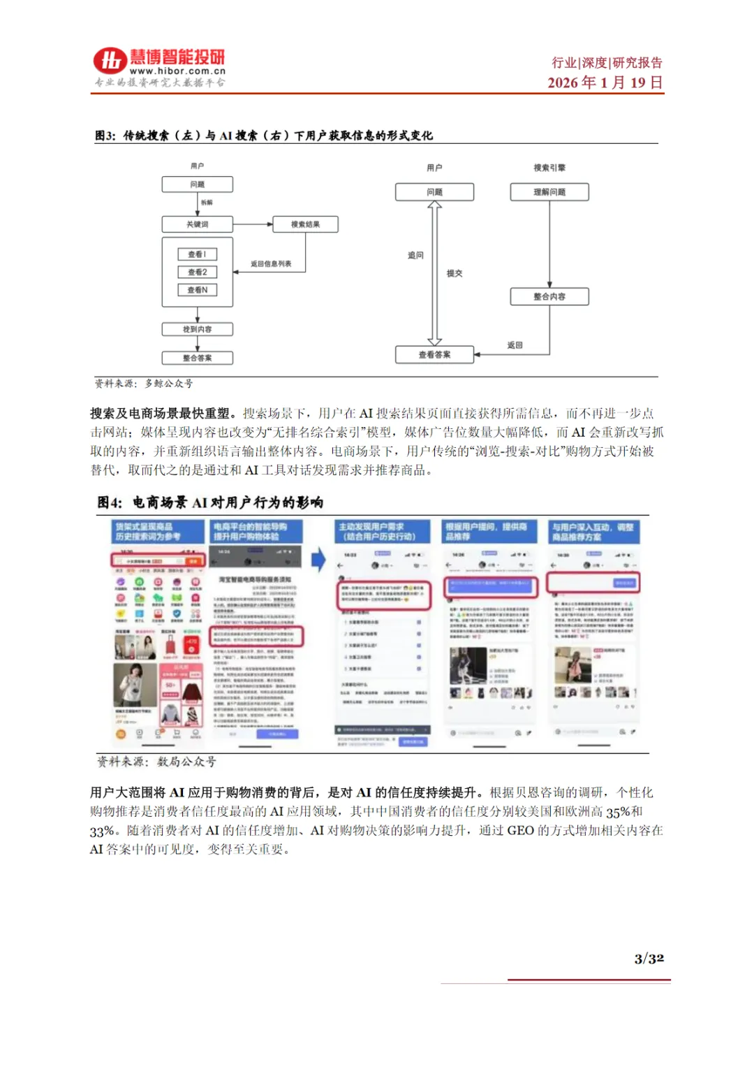 行业落地:GEO正渗透至电商、快消、汽车、金融等多个行业,其中“AI+电商”被视为最佳落地场景。