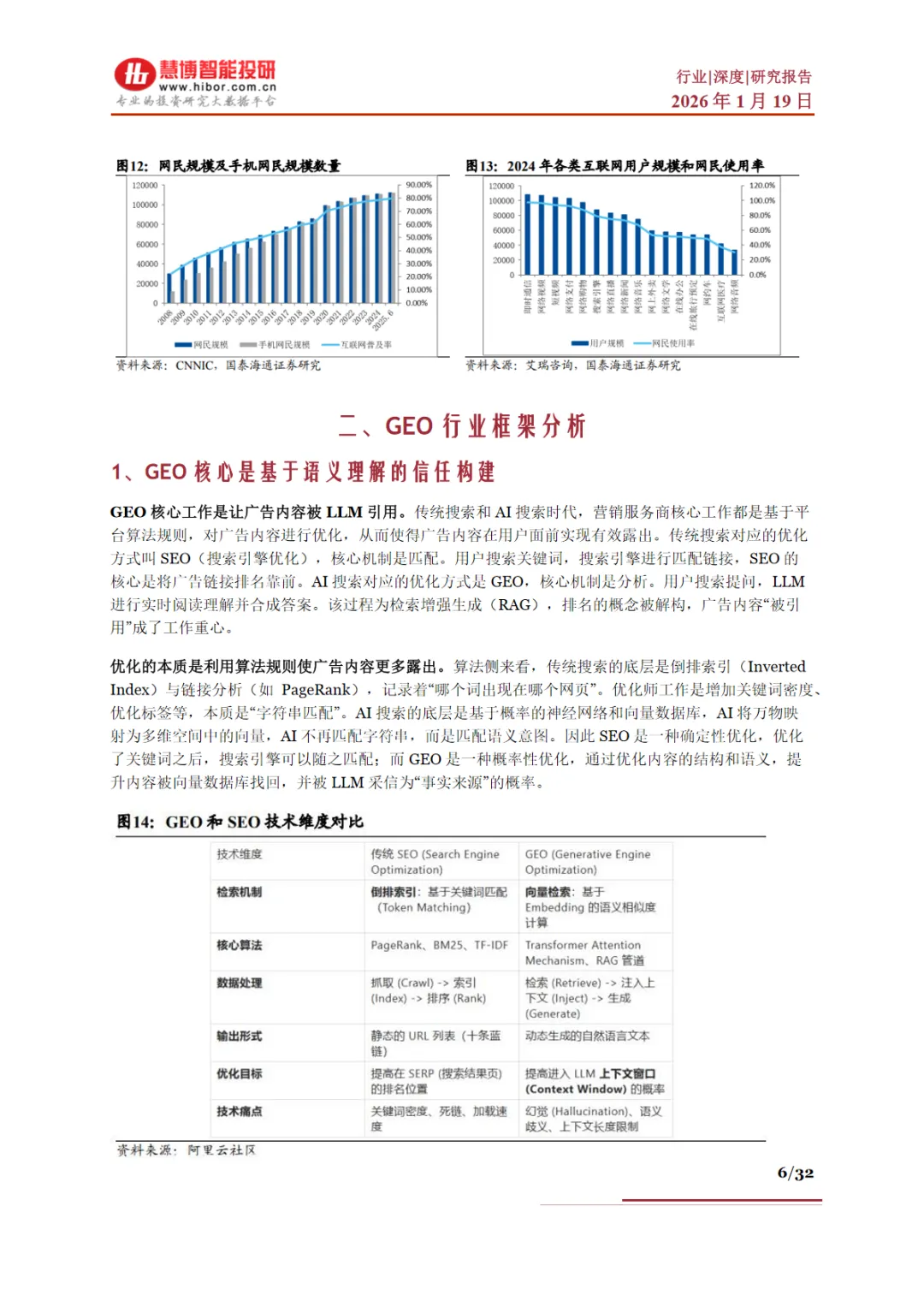 发展阶段:GEO行业处于发展初期,2024年由普林斯顿大学等机构正式提出概念,2025年以来创业公司和营销机构加速布局。