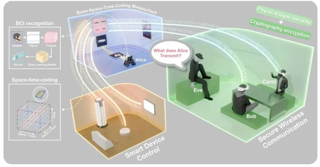 时空编码(STC)超表面作为一种可灵活调控电磁波的新型人工电磁材料,具备在时间和空间维度处理数字信息的卓越能力,为解决 BCI 技术痛点提供了创新思路。本次调研聚焦于发表在《nature communications》上的《Secure wireless communication of brain–computer interface and mind control of smart devices enabled by space-time-coding metasurface》一文,系统分析该研究的技术方案、创新点与应用价值。