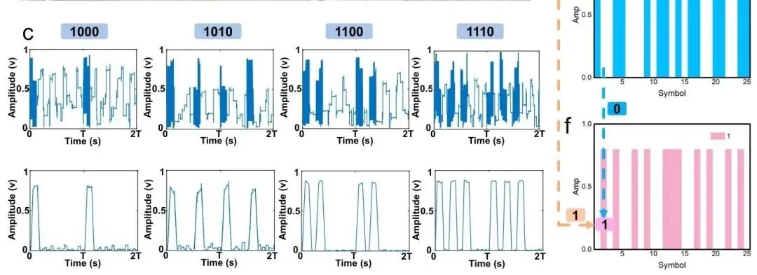 稳态视觉诱发电位(SSVEP)是一种特定频率的视觉刺激引起的大脑电位反应。研究人员将4-50Hz的视觉闪烁刺激与高频率STC信号时序同步(视觉刺激用于产生脑电,STC用于无线调制与物理层信道构造),STC信号嵌入视觉刺激的高电平区间,形成兼具视觉诱导与电磁波调控功能的融合信号(BSTCM 信号)。集成的视觉刺激和电磁波调制BSTCM的平台包含 STC 超表面和 BCI 设备,用户注视不同频率 LED 时产生的脑电信号经采集分类后,驱动超表面生成对应的融合信号。