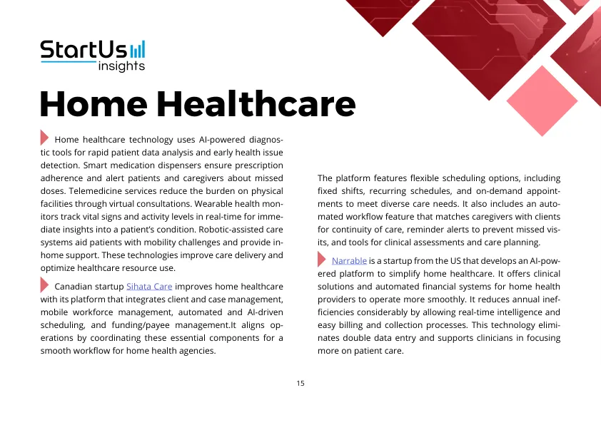 - 代表: Narrable(美,AI居家护理平台)、Sihata Care(加,一体化管理平台)。