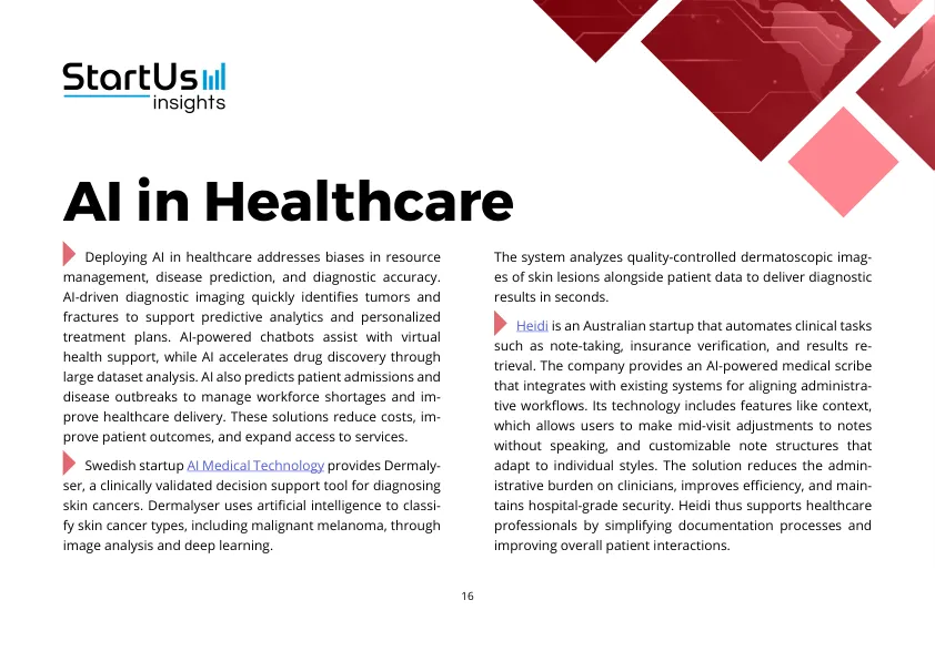 - 代表: AI Medical Technology(瑞典,皮肤癌AI诊断)、Heidi(澳,AI医疗文书助手)。
