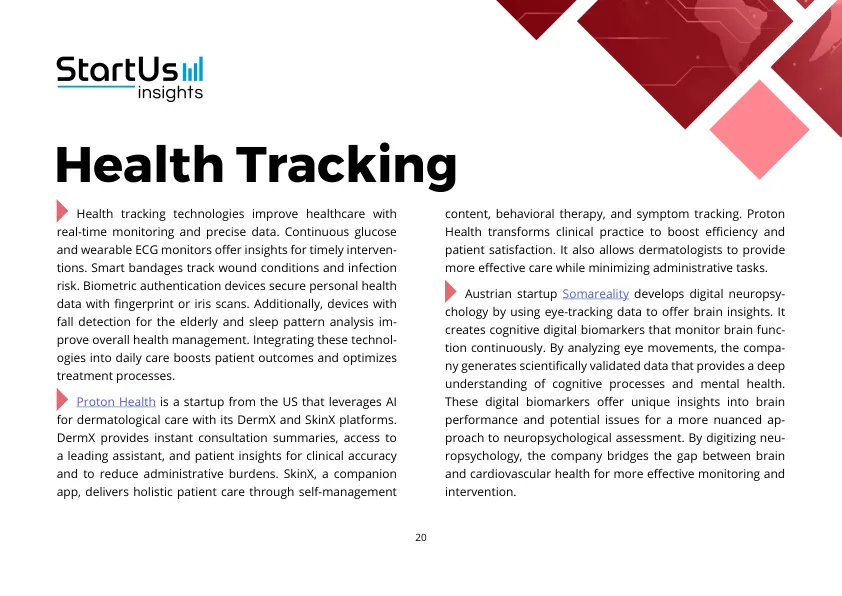 - 代表: Proton Health(美,AI皮肤健康追踪)、Somareality(奥,眼动追踪脑健康)。