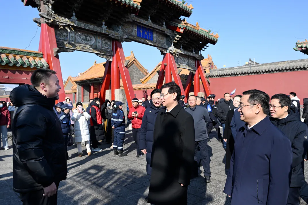 春节假期,辽宁省各地组织了丰富多彩的文旅消费活动。沈阳方城红灯高挂、年味十足,古建筑与时尚市集相得益彰。许昆林、王新伟来到这里,实地察看特色活动、景区运营、安全保障等情况,在沈阳故宫门前与市民游客热情交流,互致新春祝福。许昆林指出,春节假期,全省文旅市场持续火热,游客接待量大幅攀升,特别是大型活动和特色商圈人流密集。要全面加强秩序维护和分流引导,因地制宜打造更多沉浸式、体验式、互动式消费场景,用心用情做好服务,充分展现辽宁的独特魅力。