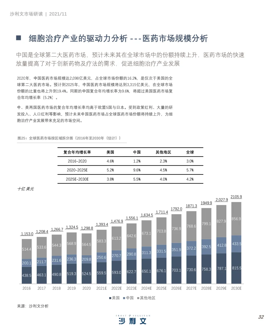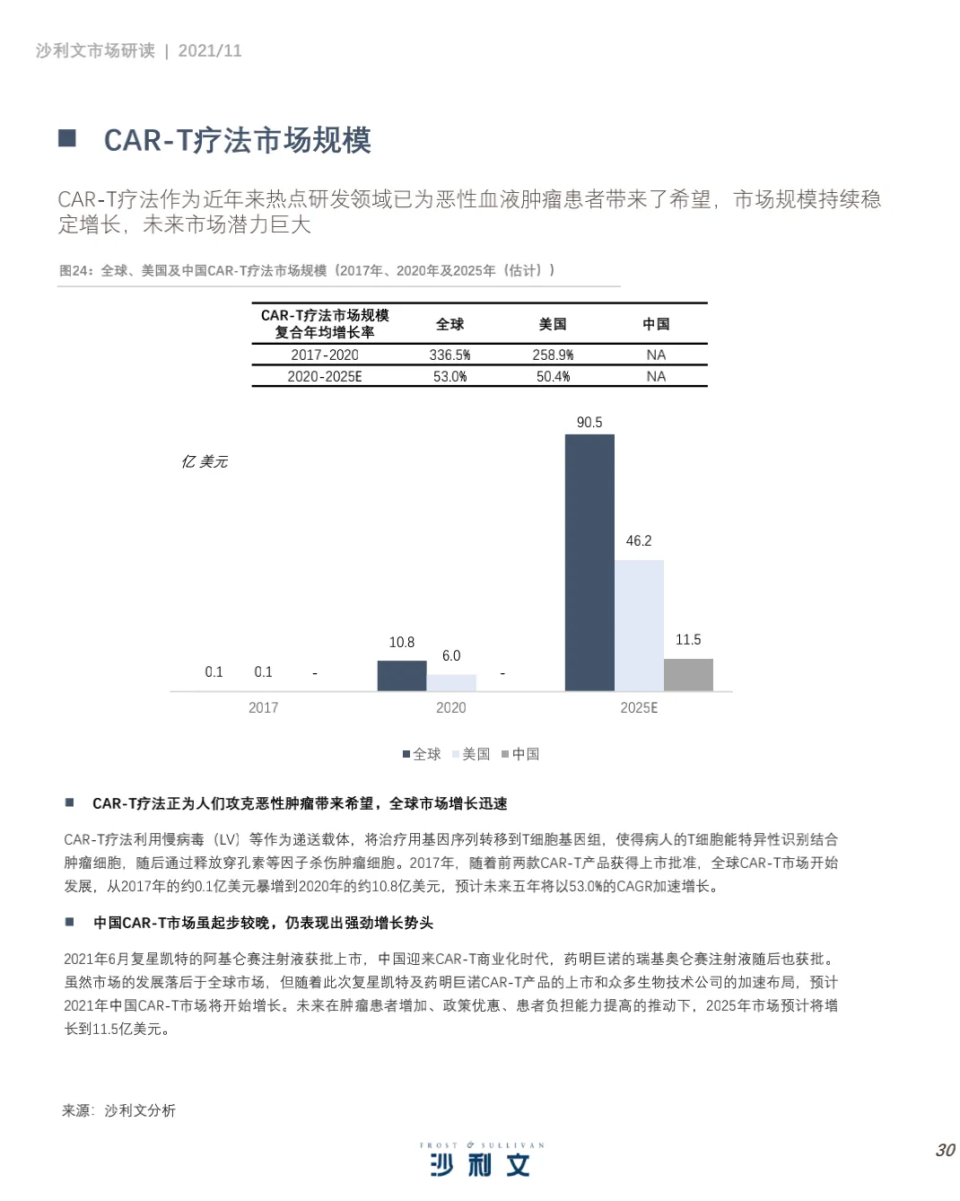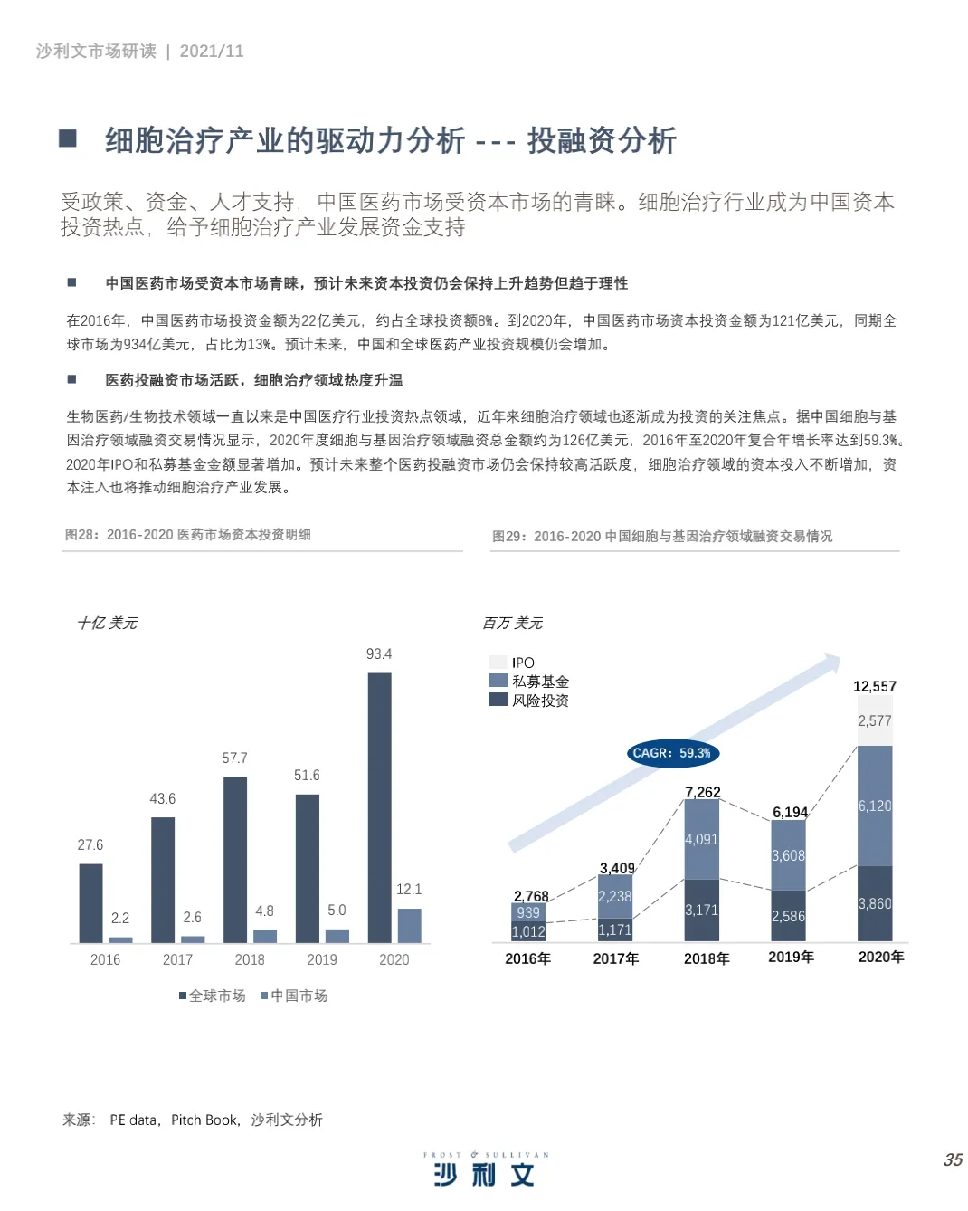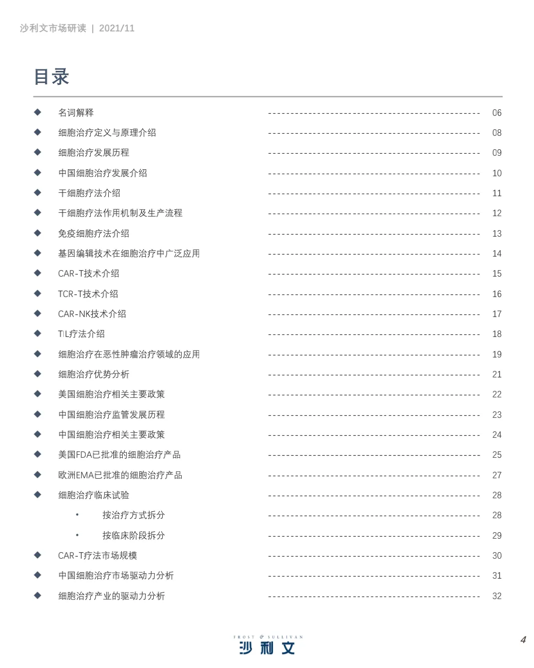 沙利文谨此发布《中国细胞治疗产业发展白皮书 》。本 报告 旨在分 析中国 细胞 治疗 ( CellTherapy, 细胞治疗)行业发展现状、行业特点、治疗领域、驱动因素及发展趋势,并聚焦中国细胞治疗行业市场竞争态势。2021年第三季度,沙利文对中国细胞治疗行业进行了竞争格局及发展驱动力分析,反映了过去和未来几年全球和中国医药研发投入、细胞疗法应用领域及行业发展趋势等。