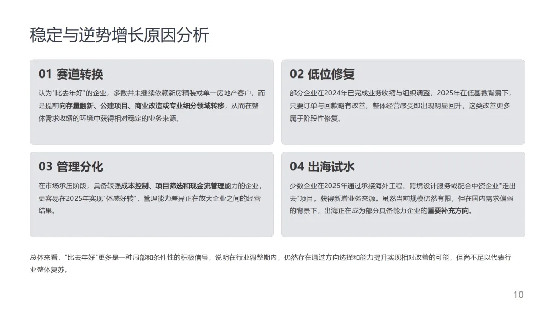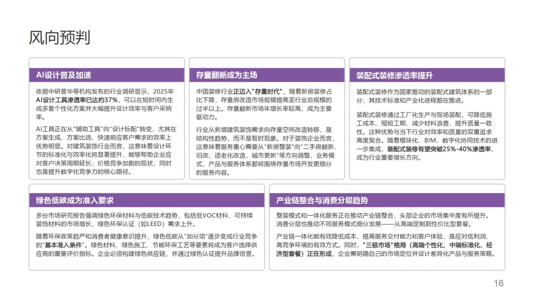 报告由 1m 建筑装饰沙龙学会基于行业调研编制,解析了建筑装饰行业 2025 年现状、2026 年趋势及未来十年发展方向,指出行业正处于从规模扩张向质量提升转型的关键节点,2025 年深度调整与结构转型并行,2026 年将延续低增长、强分化格局,结构性机会成为发展核心。