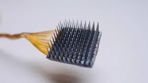 它是临床科研的“金标准”,信号极准,能捕捉单神经元放电。但致命伤是太硬,大脑搏动时电极会像微型锯子一样损伤周围组织,引发免疫反应产生瘢痕,通常记录寿命仅 2-5 年。代表公司:Blackrock Neurotech(经典的犹他阵列 Utah Array)。