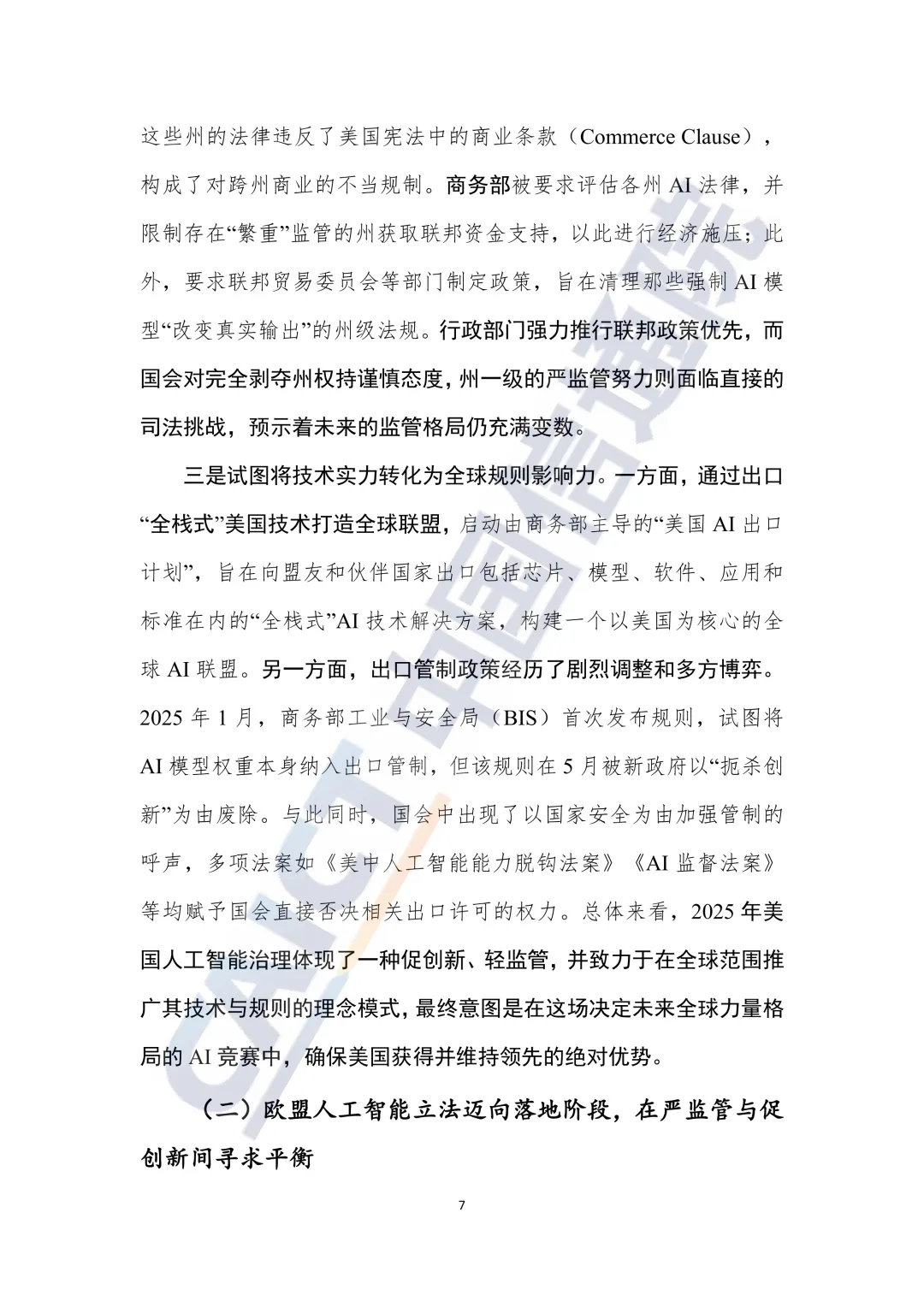 联邦层面:政策发生根本性转向。特朗普政府废除了拜登时期的AI安全行政令,将政策重心从“风险控制”转为“确保全球领导地位”。治理机构(如首席人工智能官、AI安全研究所)的职能从确保伦理安全,转向推动产业发展和扫清监管障碍。