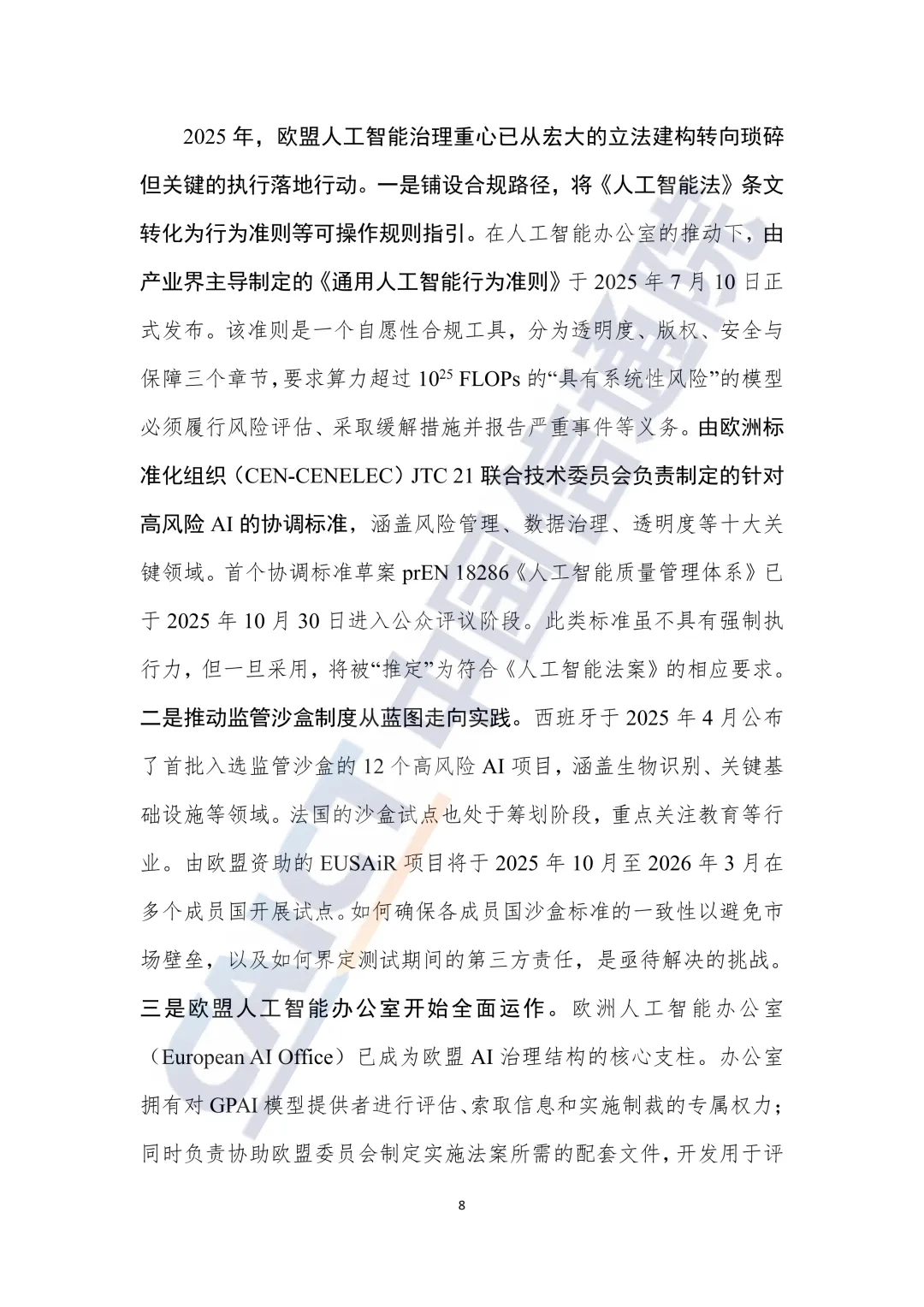 重心转移:治理重心从通过《人工智能法案》(AIA)转向琐碎但关键的落地执行,包括制定《通用人工智能行为准则》、协调标准、推动监管沙盒试点等。