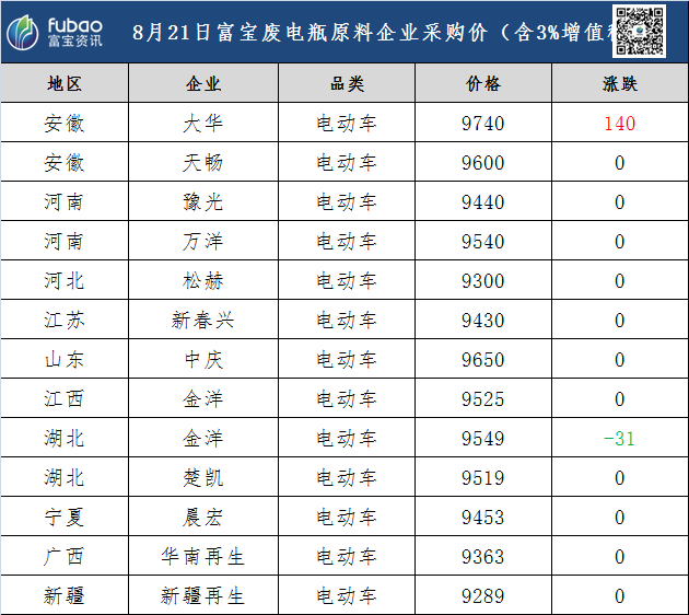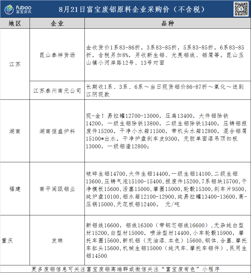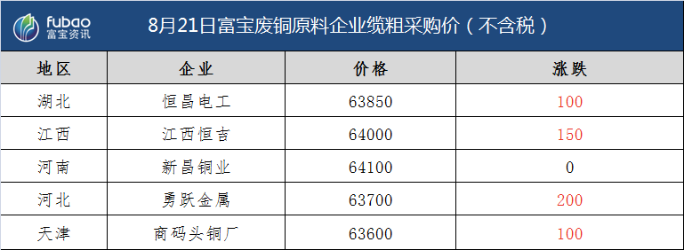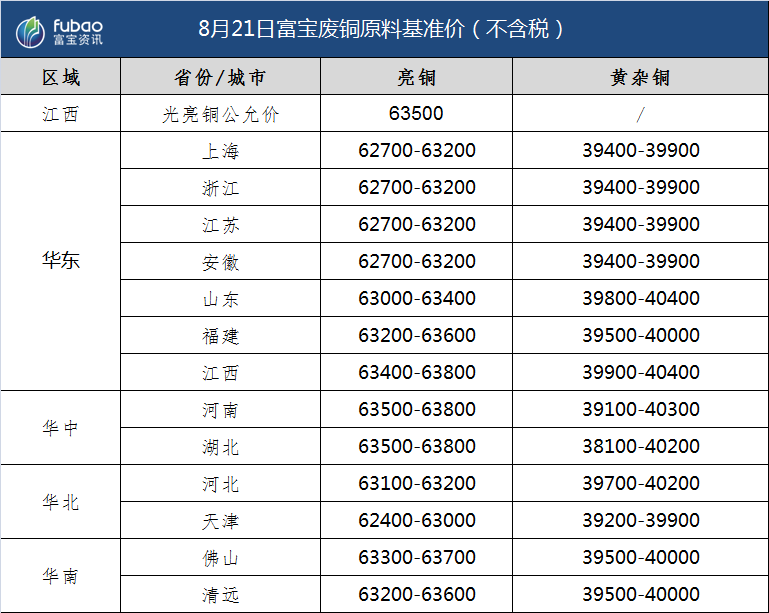 8月21日 富宝基准价、企业报价