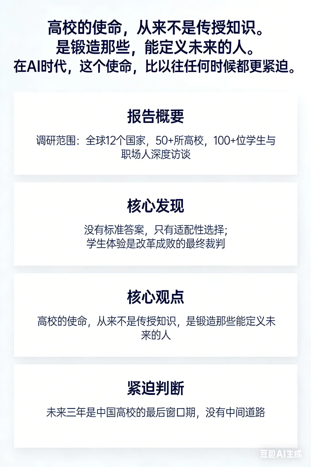 ●核心观点:高校的使命,从来不是传授知识,是锻造那些能定义未来的人