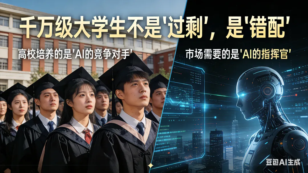 千万级大学生不是"过剩",是"错配"。高校培养的是"AI的竞争对手",市场需要的是"AI的指挥官"。