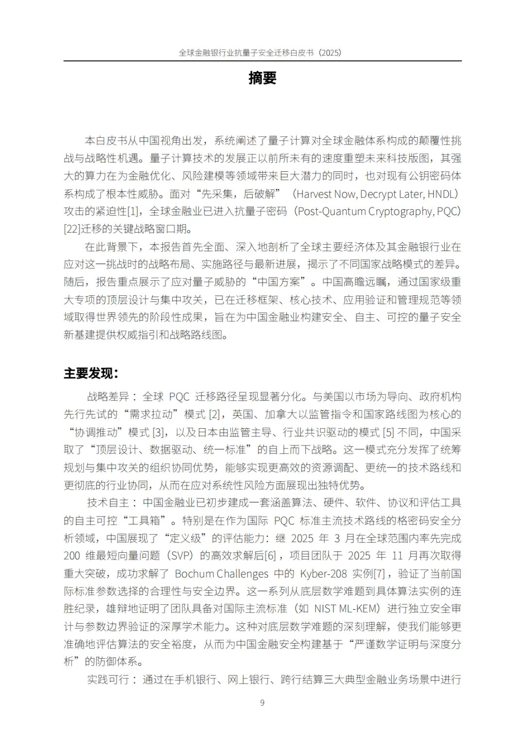 这份《全球金融银行业抗量子安全迁移白皮书(2025)》正是项目团队这一探索历程的系统性总结。它不仅汇聚了我们对国际清算银行(BIS)、NIST 及全球主要经济体最新战略的深度研判,更首次披露了基于中国银行业大规模实践的“数据驱动迁移框架”与“合规科技理论”。