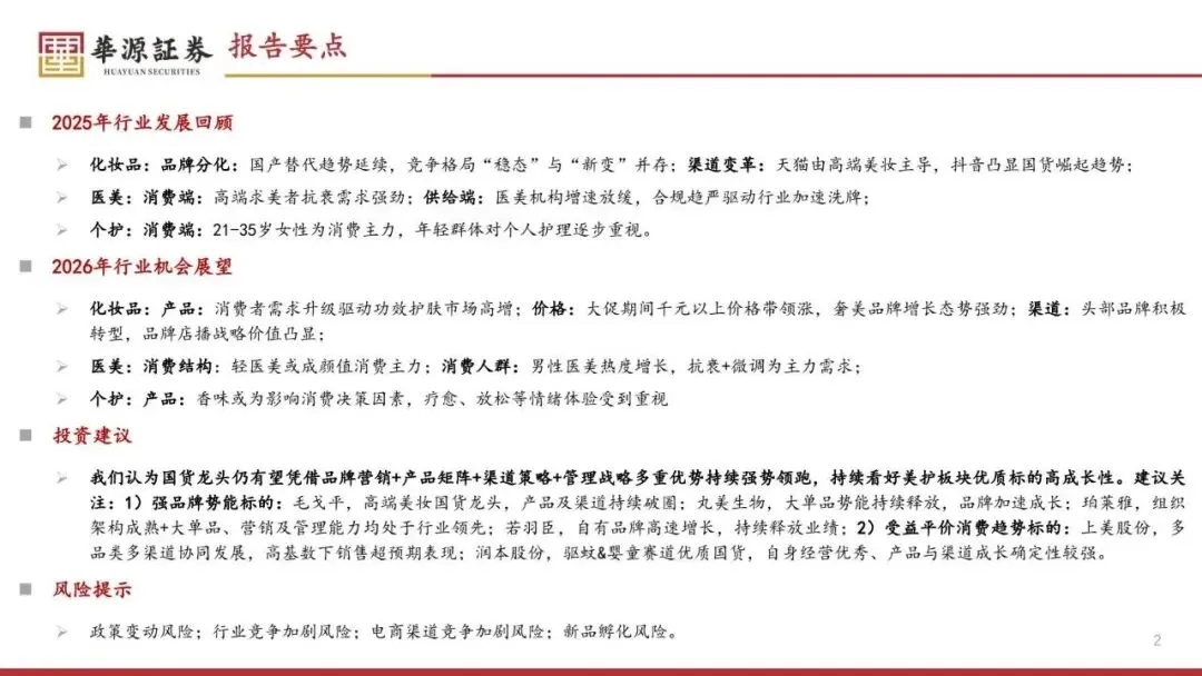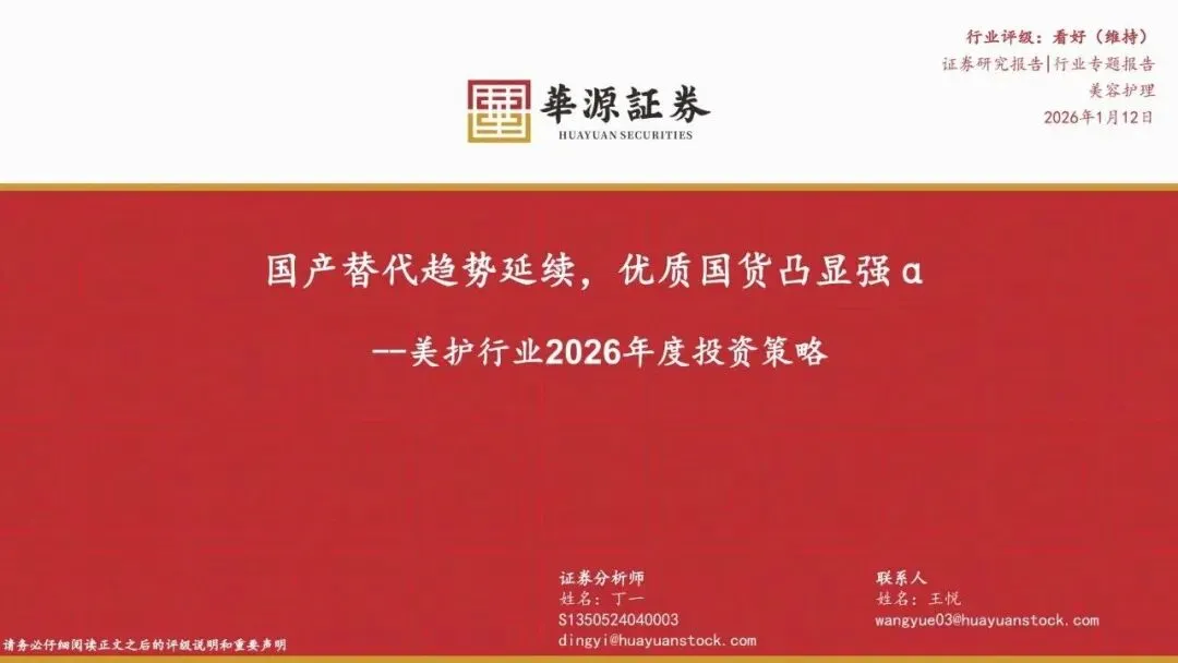 以上内容来源:《美护行业2026年度投资策略:国产替代趋势延续,优质国货凸显强α》