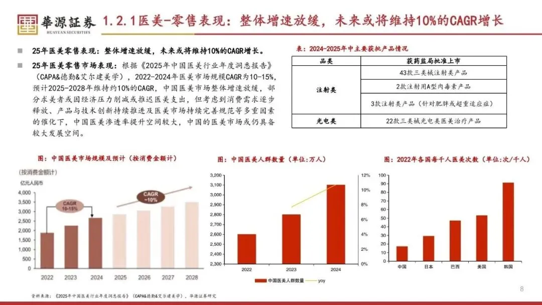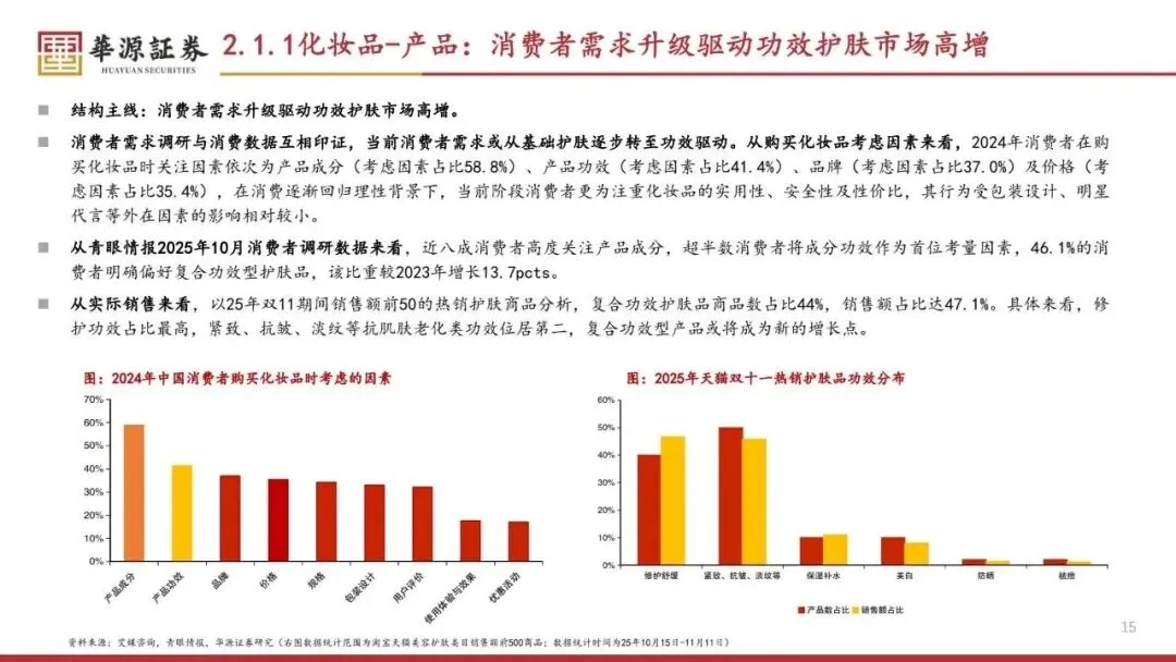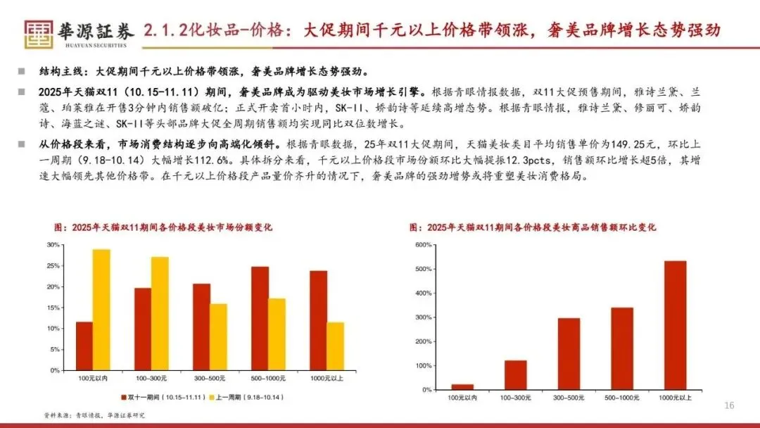 展望2026年,化妆品行业预计将继续由消费者需求升级驱动,特别是功效护肤市场的高增。同时,大促期间千元以上价格带的产品领涨,奢美品牌增长态势强劲。医美行业可能以轻医美为消费主力,男性医美热度增长,抗衰和微调成为主力需求。个护行业则可能将香味作为影响消费决策的重要因素,疗愈、放松等情绪体验受到重视。