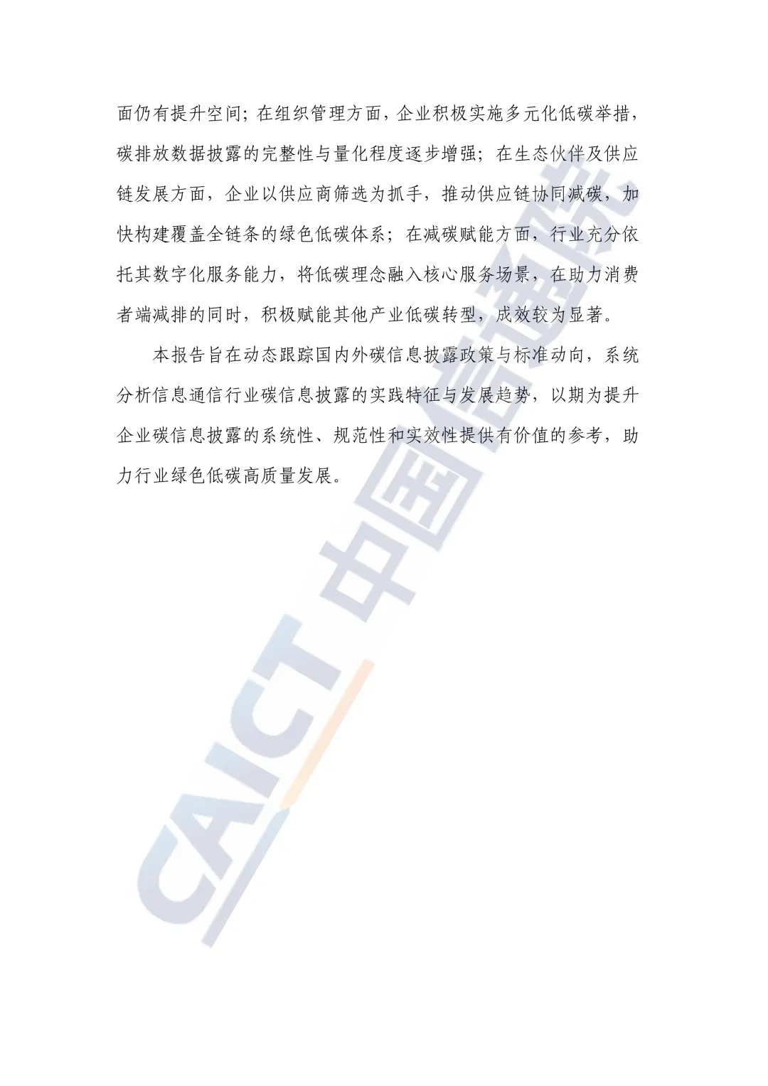 最终结论:中国信息通信行业的碳信息披露工作已从“意识觉醒”进入“实践深化”阶段,在运营减排、绿色创新等方面取得了扎实进展。然而,面向未来更为严格的监管要求和国家“双碳”战略目标,行业亟需在设定雄心勃勃的量化目标、攻克范围三数据管理难题、将绿色治理与绩效考核深度绑定、以及将技术赋能潜力大规模转化为减排实效等关键短板上取得突破。这份报告为行业完成这一跨越提供了清晰的路线图。