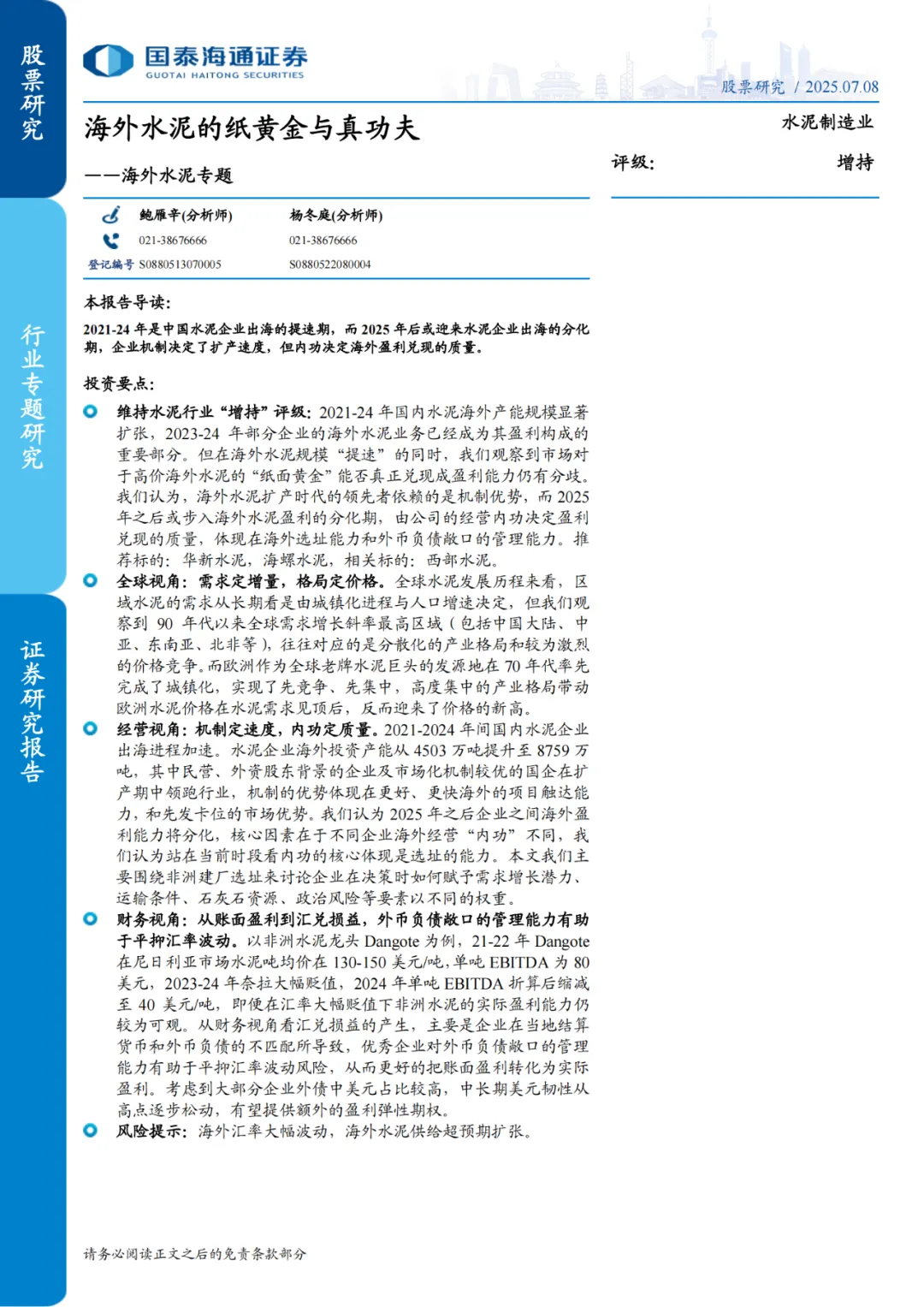 下载报告:水泥制造行业海外水泥专题:海外水泥的纸黄金与真功夫