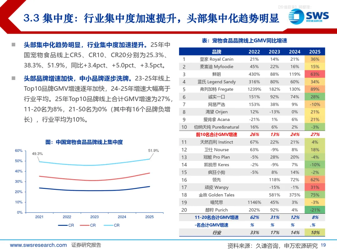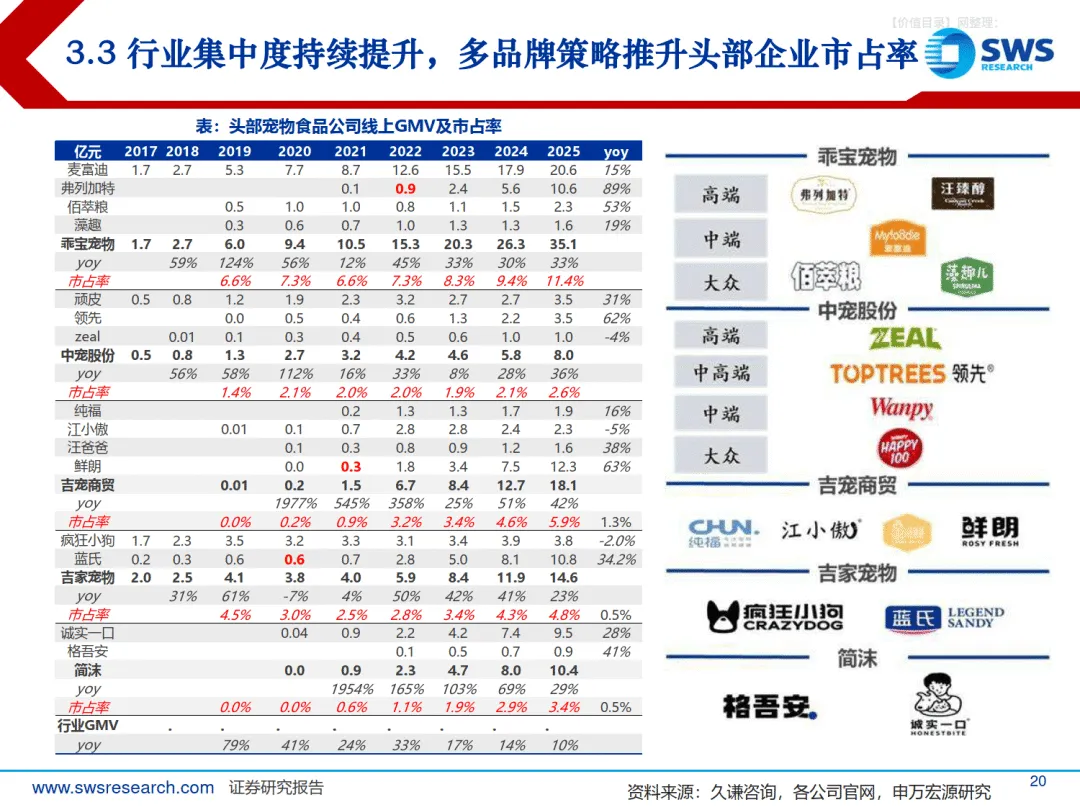 2025 年中国宠物食品行业景气依旧但品牌分化加剧,头部与中小品牌差距拉大,行业正迈入科学养宠时代,长期量价增长有支撑、中期消费升级成主线、短期行业洗牌加速,2026 年功能粮 / 处方粮有望成为行业新增长点,品牌集中度将持续提升。————