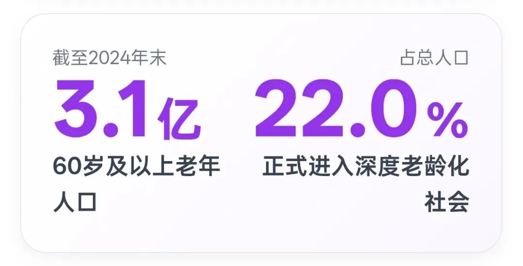 中国正以前所未有的速度进入深度老龄化社会。根据青山资本2025年度研究报告《老,无所"依"》,截至2024年末,中国60岁及以上老年人口已达3.1亿,占总人口的22.0%,65岁及以上人口占比15.6%,标志着我国已正式进入深度老龄化社会。更令人震惊的是,中国从老龄化社会到深度老龄化社会仅用了21年,远快于法国的126年、美国的72年。