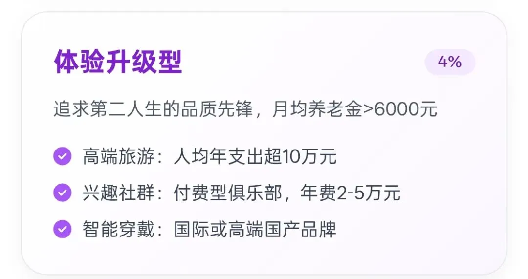 2.1 体验升级型(4%):追求第二人生的品质先锋
