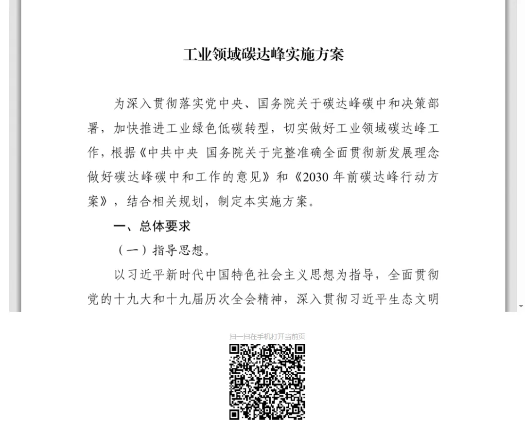 核心政策: 《江苏省工业领域及重点行业碳达峰实施方案》。