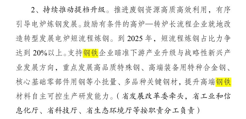 (2)结构优化:鼓励电炉钢比例提升(2025年达到15%以上),其中广东省提出到2025年电炉钢比例保持在30%左右(利用其废钢回收及西电优势)。