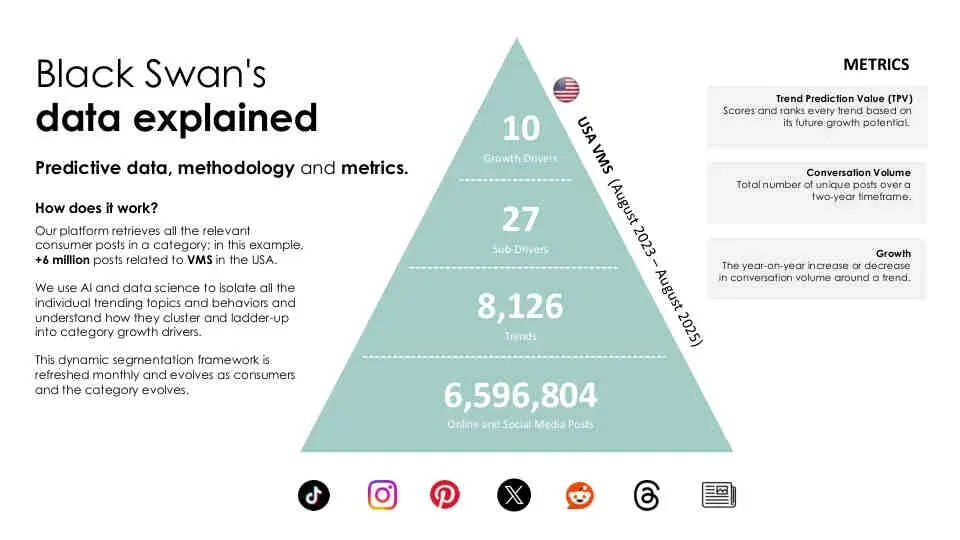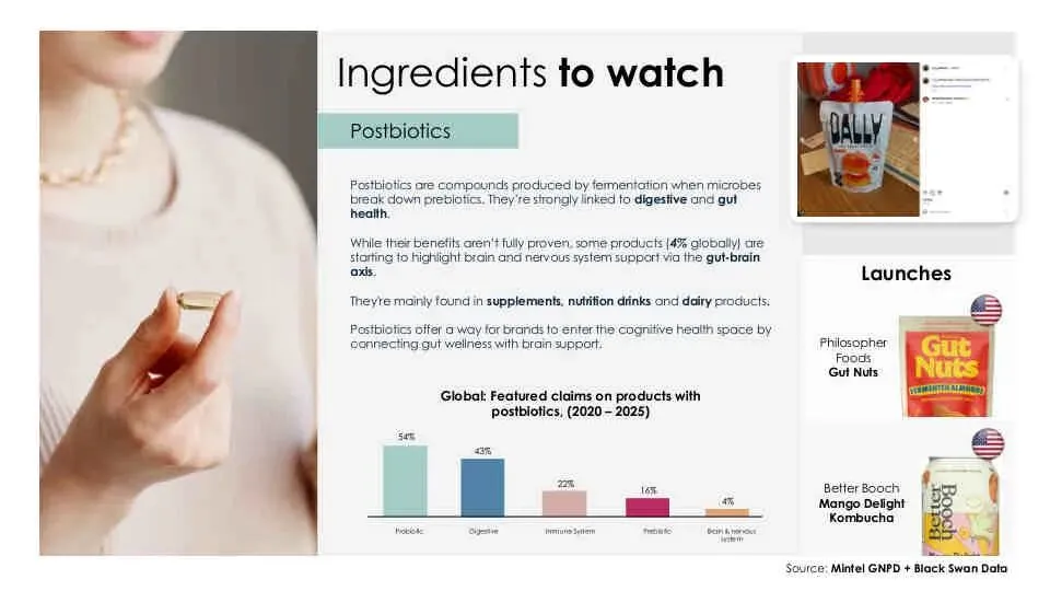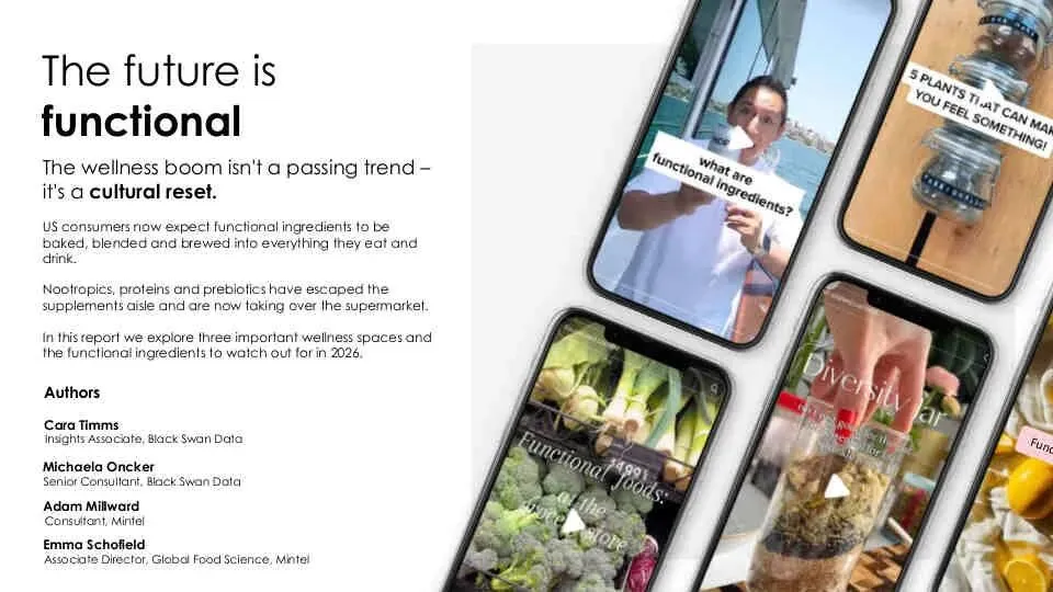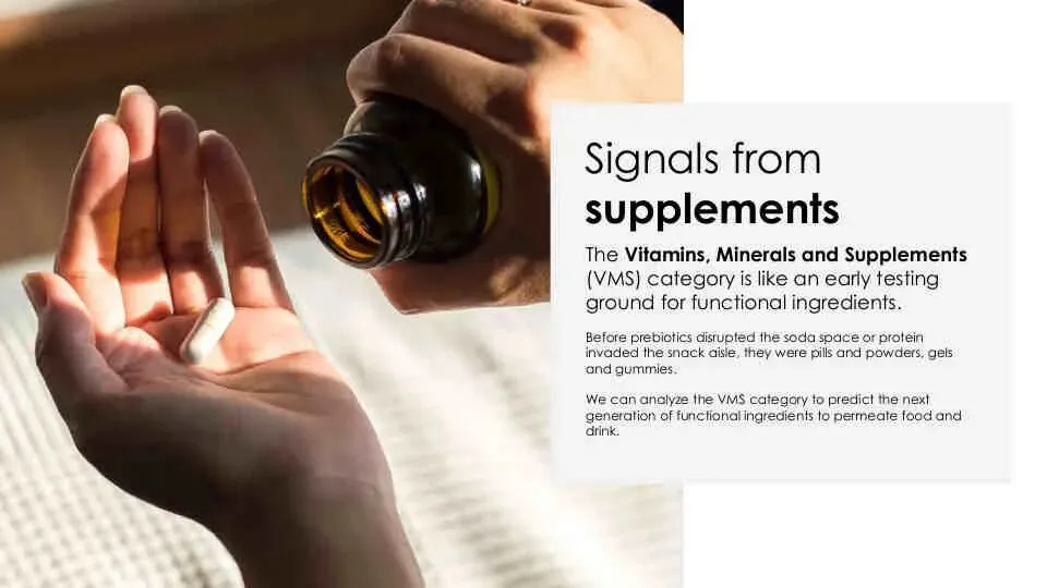 - 方法论: 报告通过分析维生素、矿物质和补充剂(VMS)品类中的早期消费信号,来预测未来将渗透到食品饮料中的热门功能性成分。