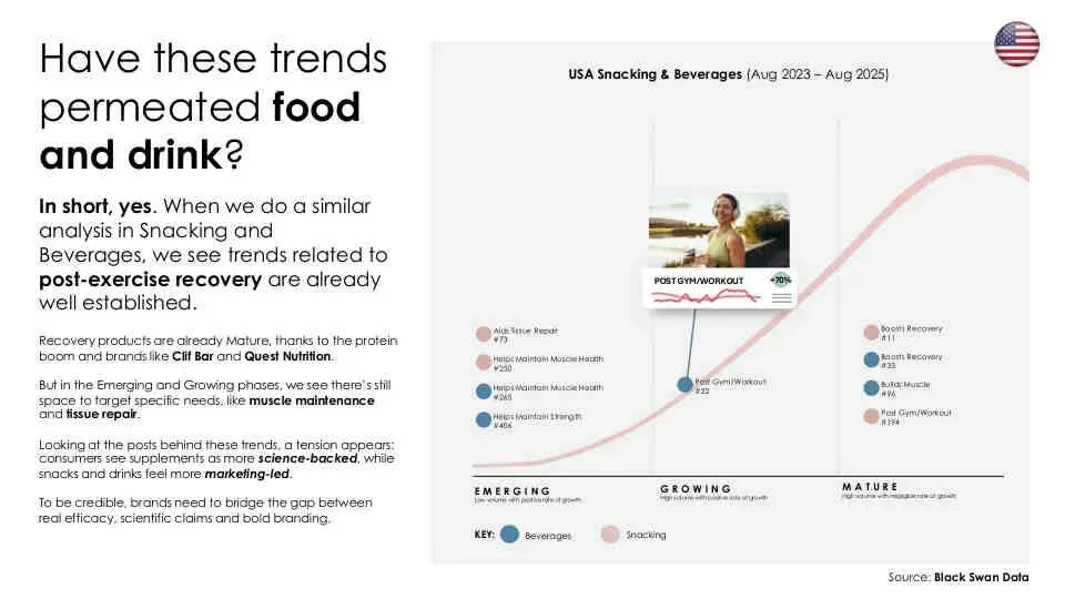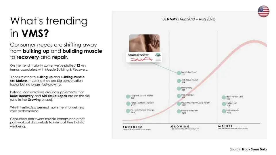 - 需求转变: 从追求“增肌”(Bulking Up)转向关注“恢复、修复和长期维持”(Recovery, Repair, Maintenance)。