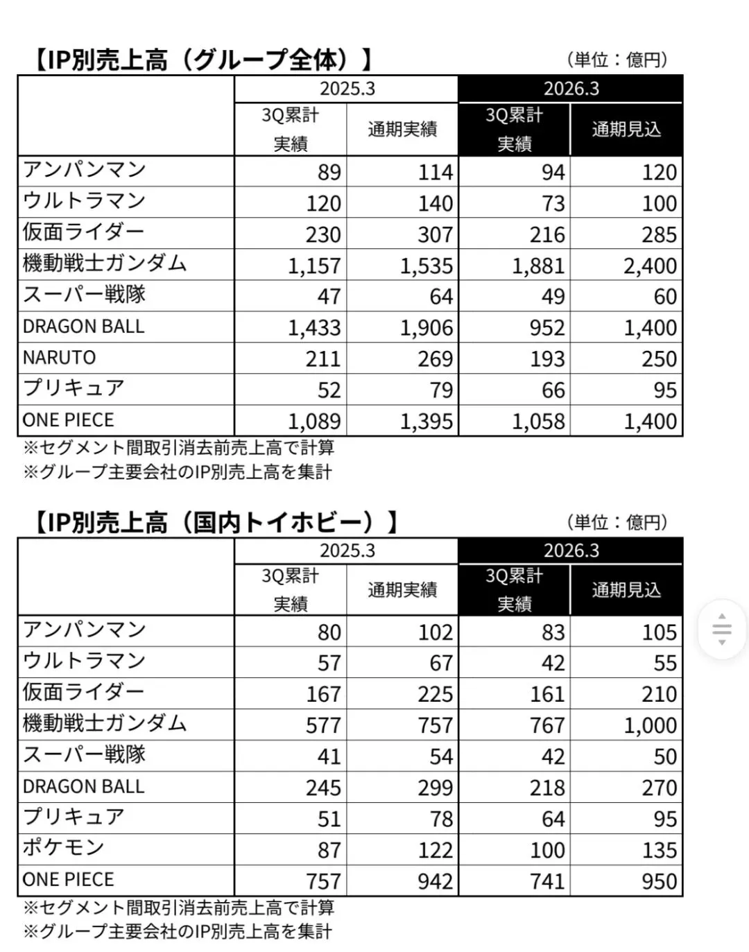 前段时间,万代公布了2025-2026年度旗下主要IP全球范围内的财报数据,一如既往来看看三大特摄在2025年和2026年的销售数据。