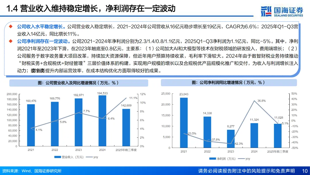 本篇行业报告可以通过扫下方知识星球下载。39元就可以下载星球所有报告。免费提供报告查找服务。税友股份,作为国内财税AI+SaaS的龙头企业,凭借二十余年的税务领域深耕经验,正迎来新的增长机遇。公司在G端业务上有着深厚的积累,深度参与了金税三期、四期等国家级项目,而在B端业务上,税友股份通过打造犀友财税垂域人工智能平台,实现了AI与财税服务的深度融合,引领智慧财税的新潮流。公司的核心逻辑在于其在TO G业务上的稳固地位和TO B业务上的创新推进。在G端,税友股份自2002年推出省级集中处理模式的软件产品以来,一直服务于税务系统的数字化转型。而在B端,公司于2024年推出的“犀友”大模型算法,标志着其在“AI+财税”数智化进程中的深入布局。税友股份的B端业务表现亮眼,截至2025年上半年,平台活跃企业用户达到1180万户,较年初增长10.28%,付费企业用户778万户,较年初增长10.04%。公司的AI Agent技术显著提高了财税处理效率,降低了幻觉率,提升了实操效率,同时降低了人力成本。据《聚焦财税场景的AIBM生态服务行业白皮书》预测,到2028年,国内财税AIBM生态服务行业市场规模将达到3907.3亿元,显示出巨大的市场潜力。政策的持续推进也为公司的G端业务提供了稳定的增长动力。金税一到四期的演变,使得税务数字化转型成为必然趋势,税友股份凭借其AI+数字政务的产品优势,持续中标税务局项目,卡位清晰。盈利预测方面,预计2025-2027年公司营业收入分别为22.56亿、29.24亿、34.93亿元,归母净利润分别为1.75亿、3.63亿、5.59亿元,维持“增持”评级。然而,公司也面临着股价波动、税收政策变化、网络安全风险、高端人才竞争以及国家政府财政预算收紧等风险。总体来看,税友股份在财税数字化的大潮中,凭借其在AI+SaaS领域的深耕和创新,正开启新的增长空间,为投资者提供了一个值得关注的机会。免责声明:以上分享报告为公开合法渠道获得,内容大部分来源于网络,版权归原作者所有,如有侵权,请及时与我们联系,我们将第一时间保障您的权益。推荐内容仅供参考学习,不构成投资建议。