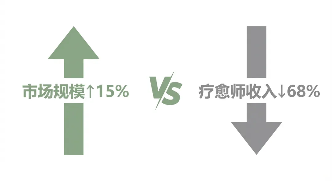 第二个来自一份行业调研:73%的疗愈师表示“获客比三年前更难”,68%的疗愈师收入没有增长,甚至有下降。