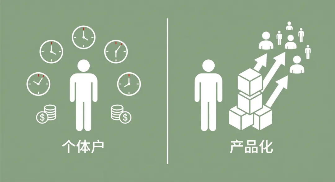 服务是一次性的,产品是可复用的。你是在卖时间,还是在卖方法?