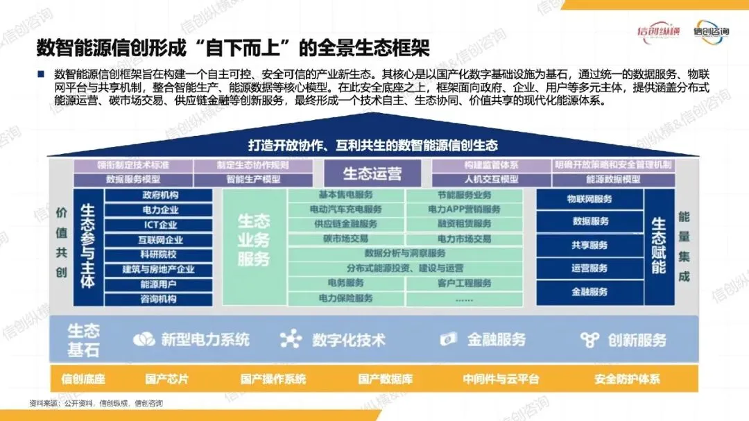 能源智慧化(2035 年起):实体与虚拟世界实时互馈,能源系统实现⾃主决策与⾃愈,⽽信创将成为保障系统安全的 “⽣命线”,⽀撑⾼度⽆⼈化智慧运作。
