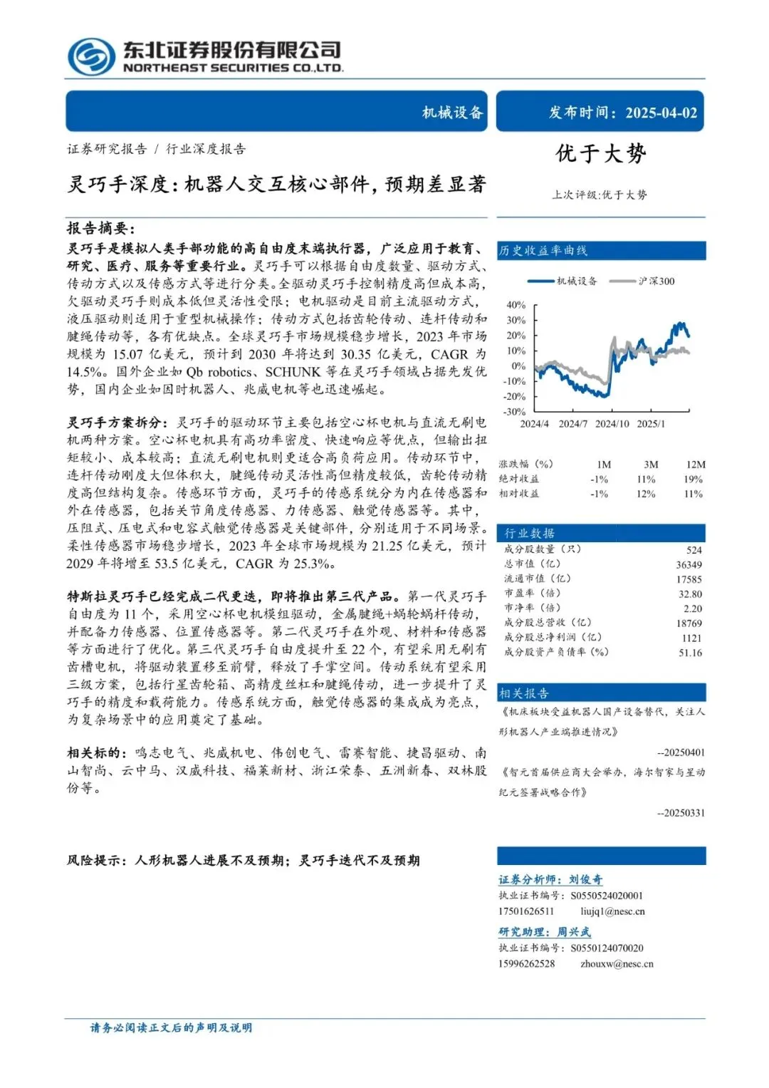 2025年机器人行业专题报告:灵巧手,高灵活度末端执行器|附50页PDF文件下载
