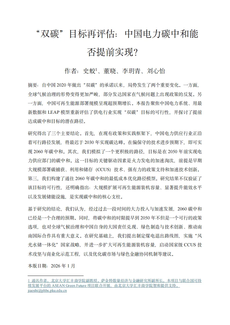 【全球行业报告库】2026年“双碳”目标再评估报告-中国电力碳中和能否提前实现?(附下载)